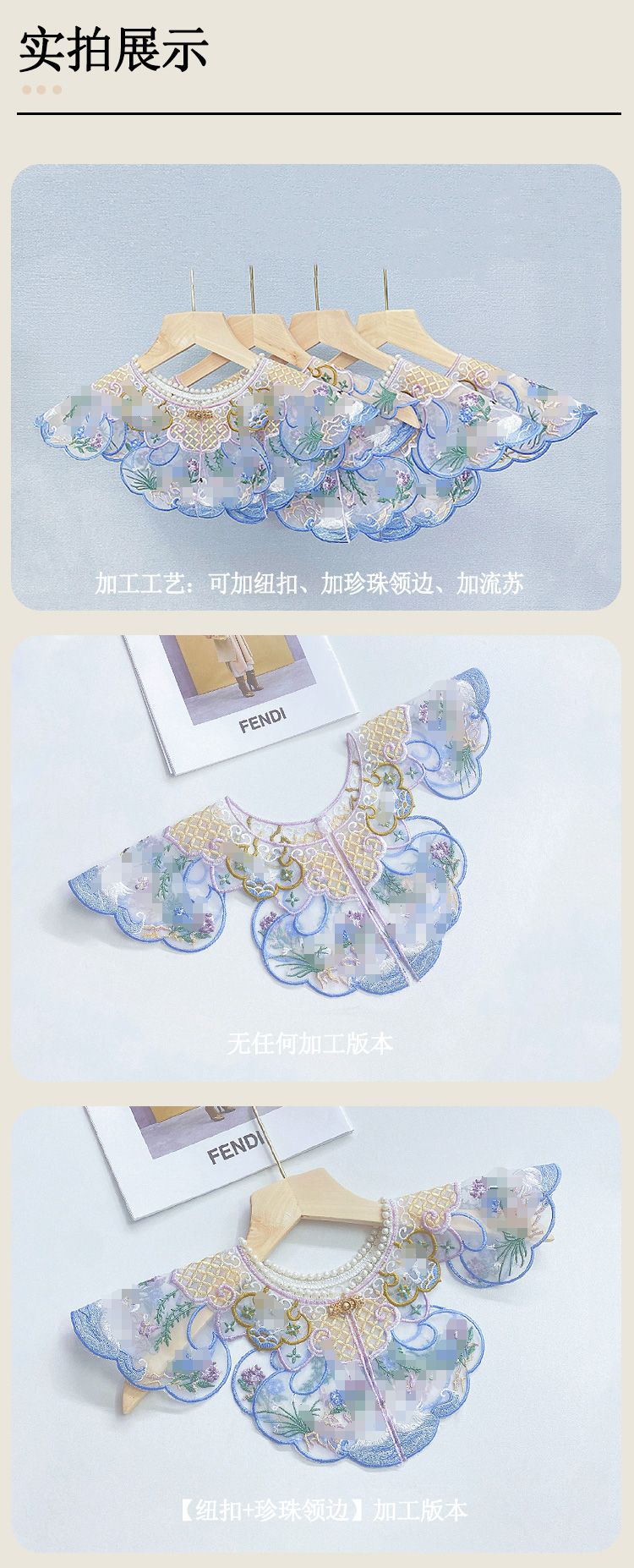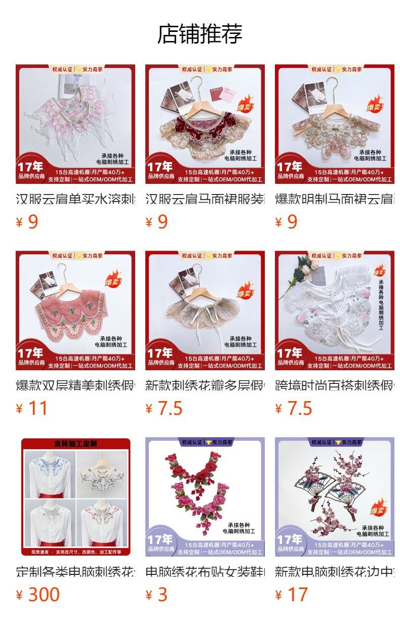 Falda cheongsam con cara de caballo y hombros de nube Hanfu antigua con bordado soluble en agua, ropa de soltero, cuello falso a juego, accesorios de ropa, ropa de mujer de encaje