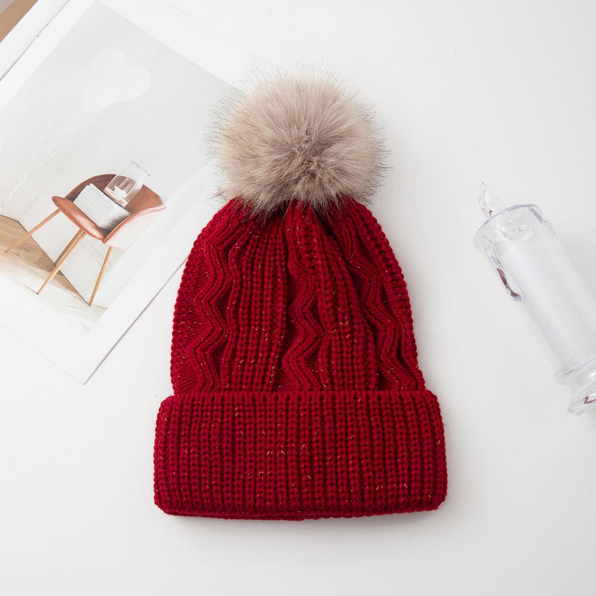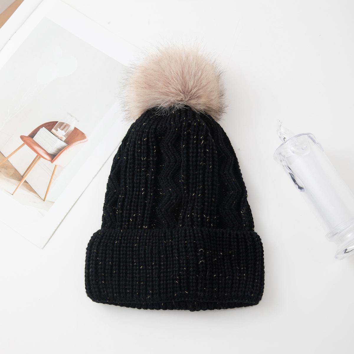 Nuevo gorro de punto con bola de pelo de seda dorada de una sola capa, elegante e informal, de estilo sencillo para otoño e invierno, cálido y combinable con todo, gorro de lana con protección para las orejas.