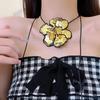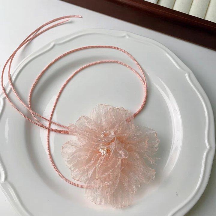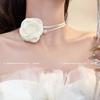 2#White camellia leather rope strap necklace
