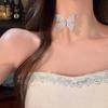 Collar de encaje rosa retro francés para mujer, cadena de clavícula ligera de lujo de alta gama, nueva cadena de cuello de hada súper 2024