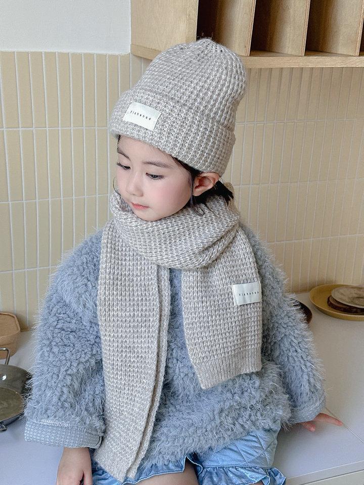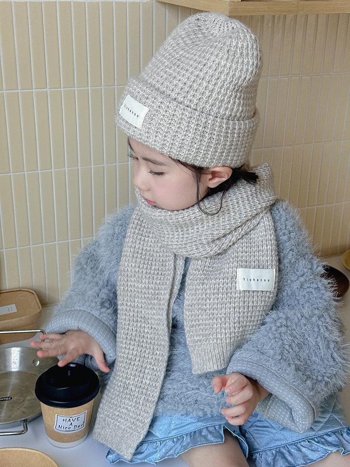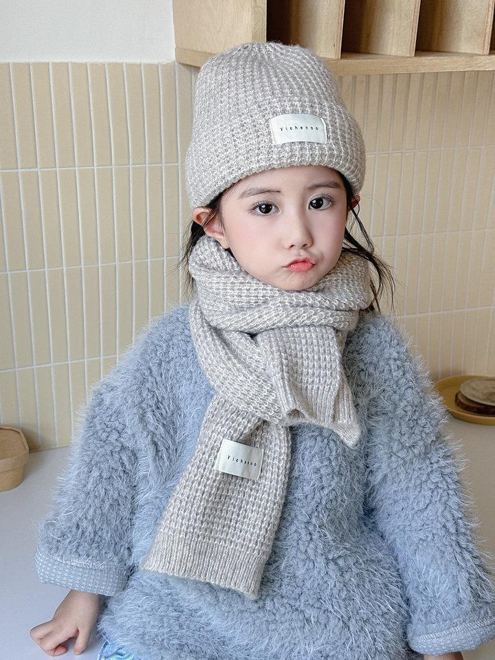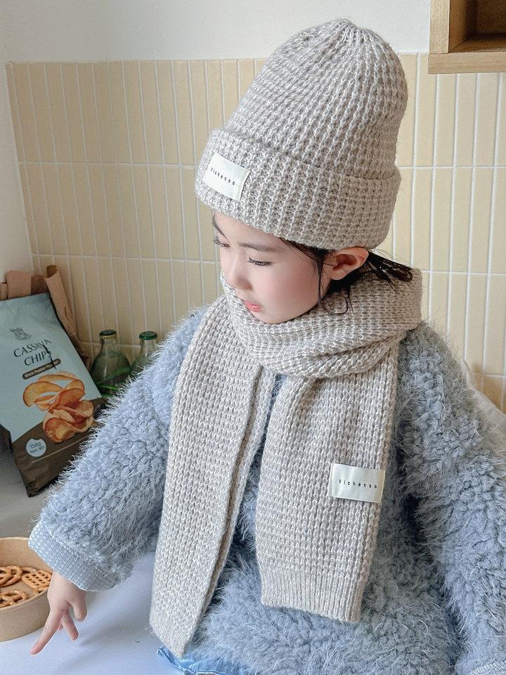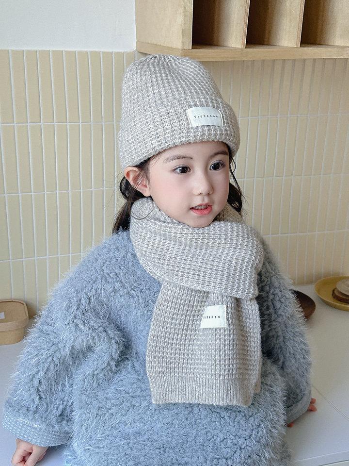 Conjunto de gorro y bufanda de punto para niños, estilo coreano, otoño e invierno, gorro y bufanda de lana cálida para bebé, conjunto de dos piezas