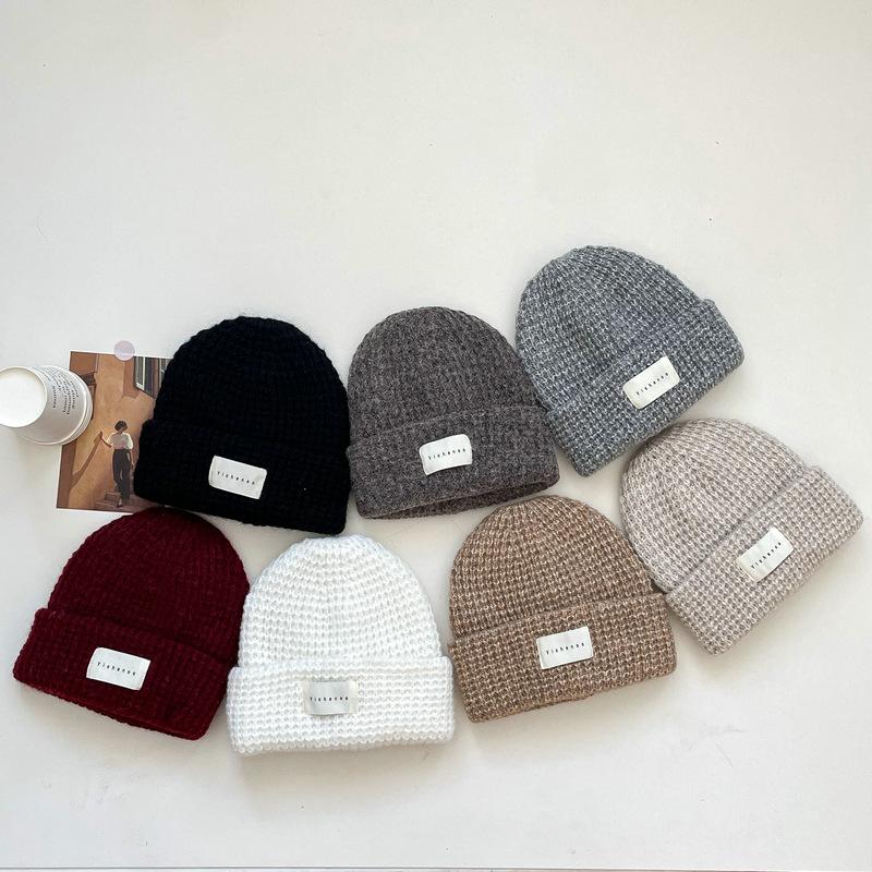 White hat, Beige hat, Khaki hat, Light gray hat, Dark gray hat, Burgundy hat, Black hat, White scarf, Beige sc...