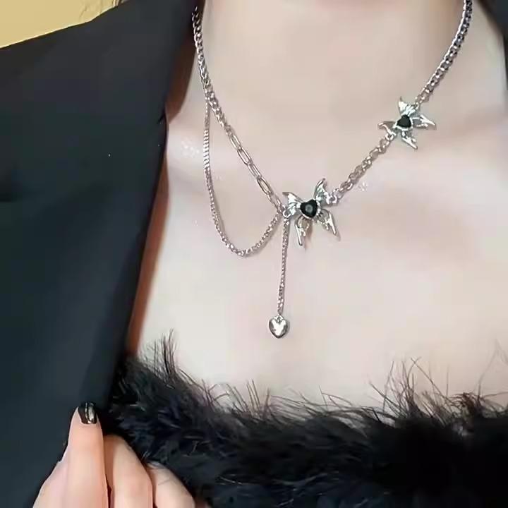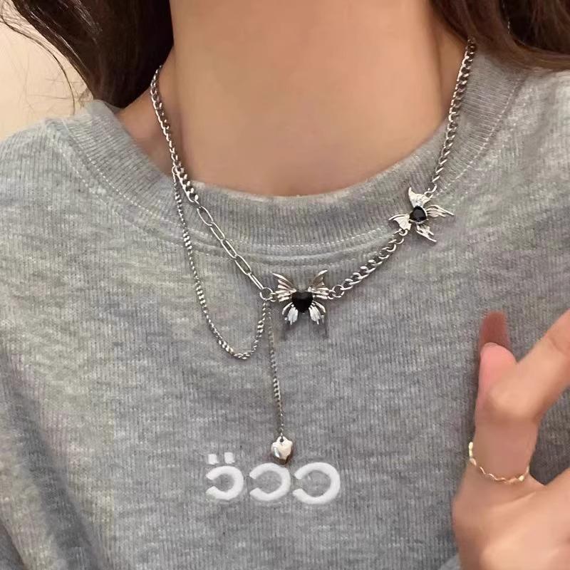 Collar con borla de mariposa líquida, estilo frío, dulce y fresco, cadena de clavícula para chica, collar pequeño y ligero de lujo para mujer