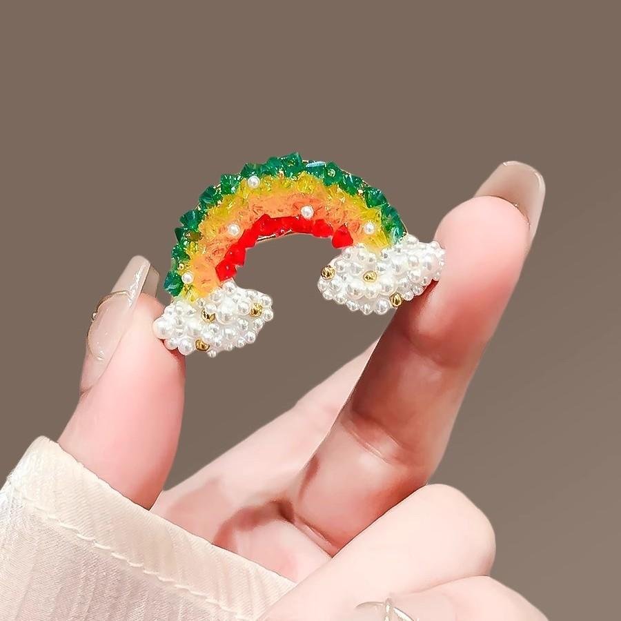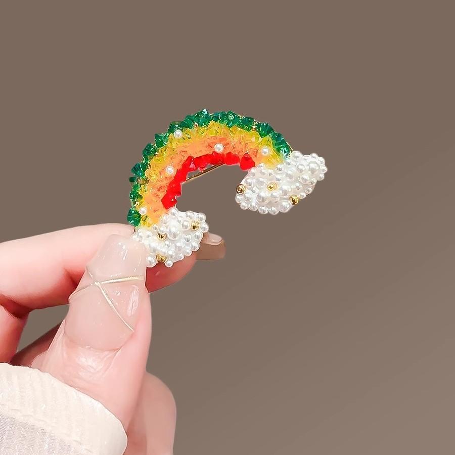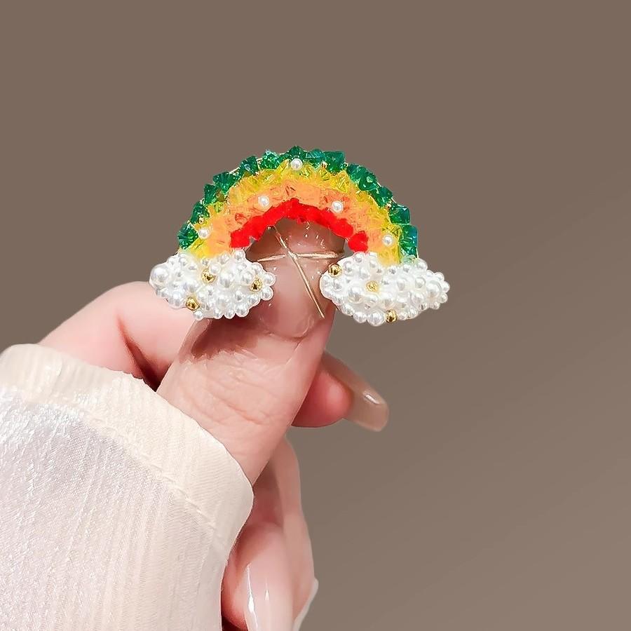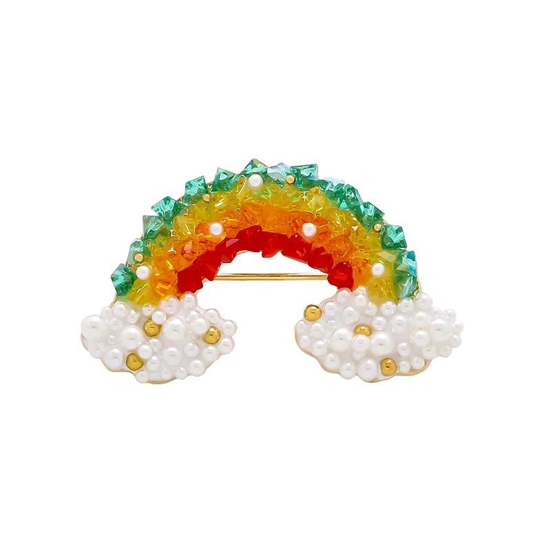 Exquisito broche de nube de arcoíris de cristal, diseño de nicho femenino de alta gama, bonito broche de moda, ramillete, accesorios que combinan con todo.
