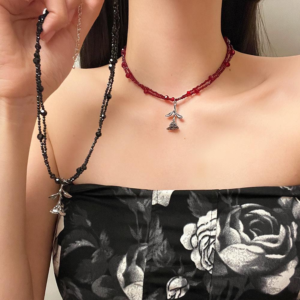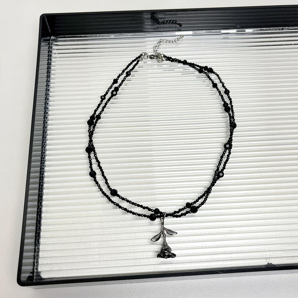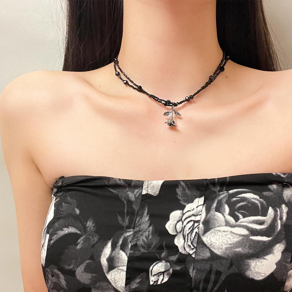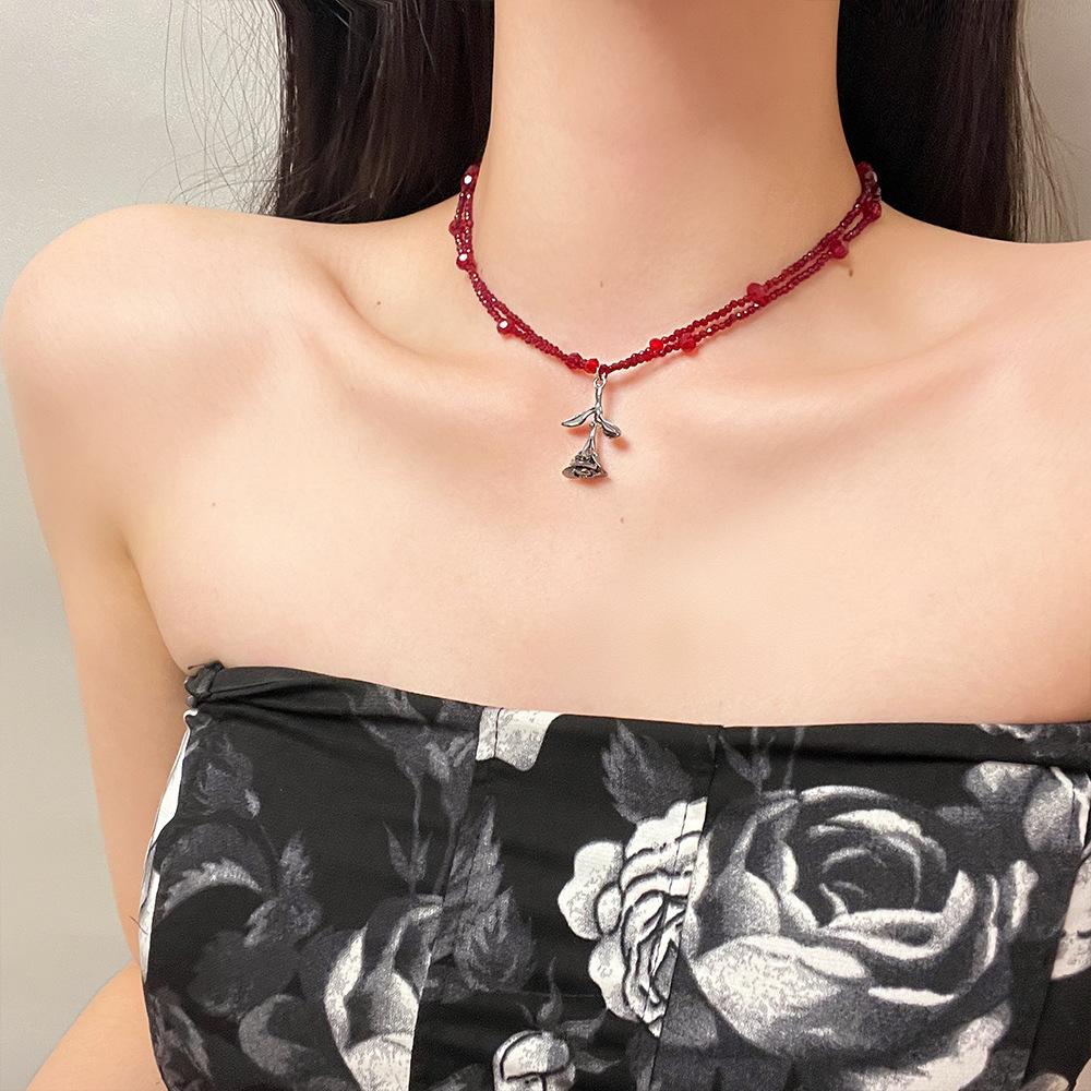 Collar vintage de cuentas de rosa de nicho para mujer, estilo Spice Girl, con doble capa apilada, cadena de clavícula distintiva que combina con todo.