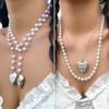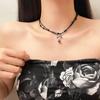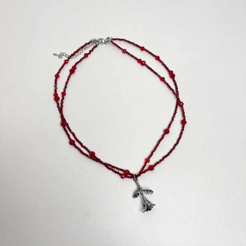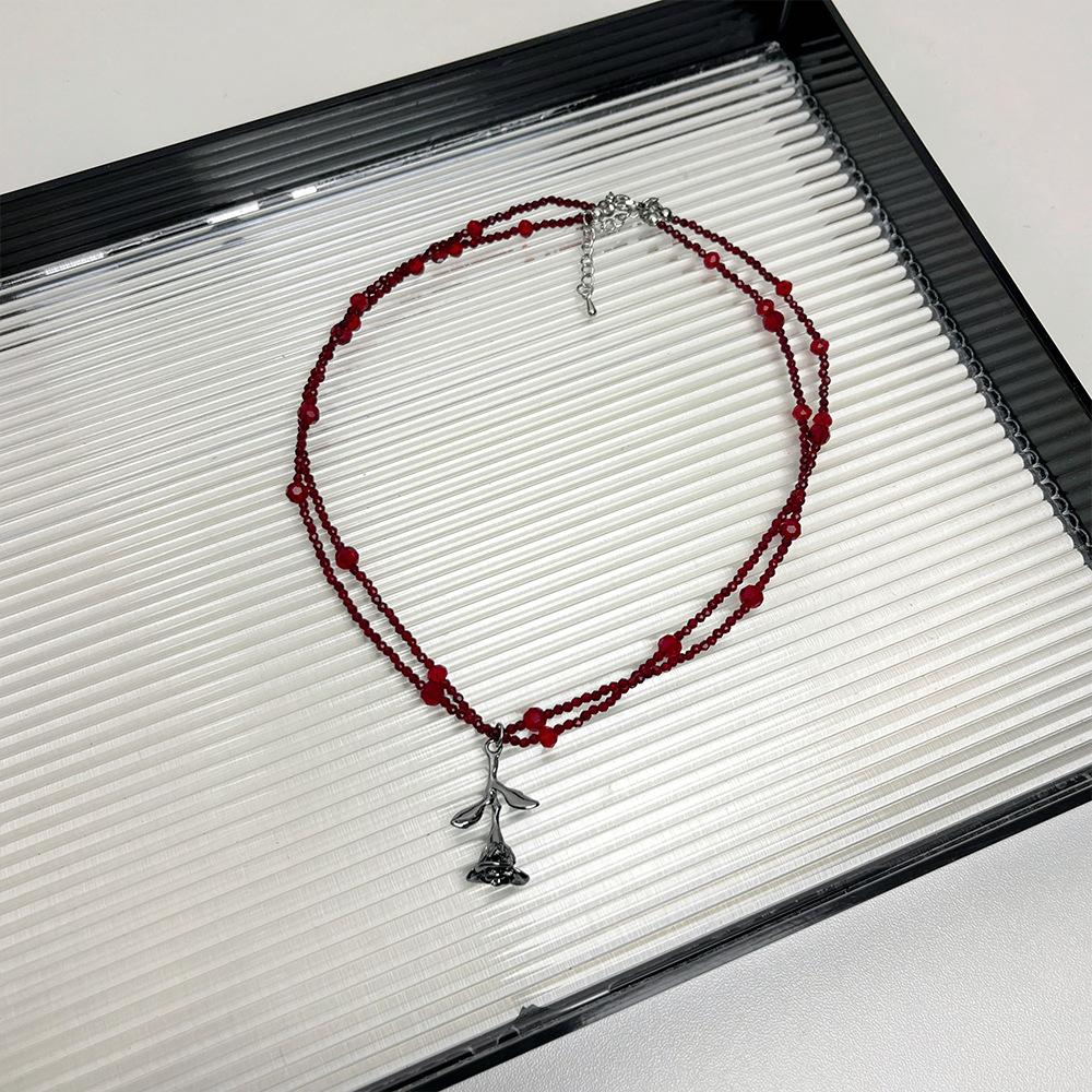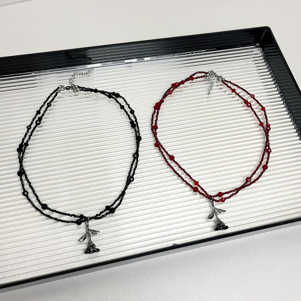 Collar vintage de cuentas de rosa de nicho para mujer, estilo Spice Girl, con doble capa apilada, cadena de clavícula distintiva que combina con todo.
