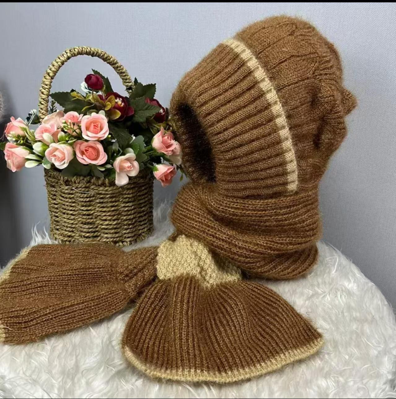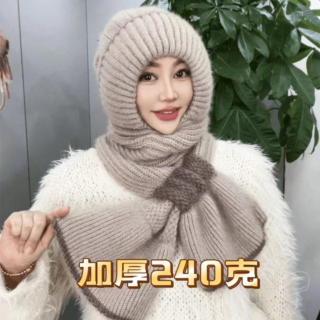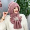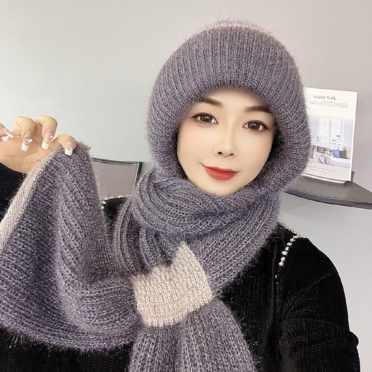 Invierno Nuevo Gorro de Punto y Bufanda Integrados Gorro Cálido, Protección para el Cuello a Prueba de Viento y con Forro Polar Gorro de Mamá, Gorro de Nieve de Poliéster a la Moda