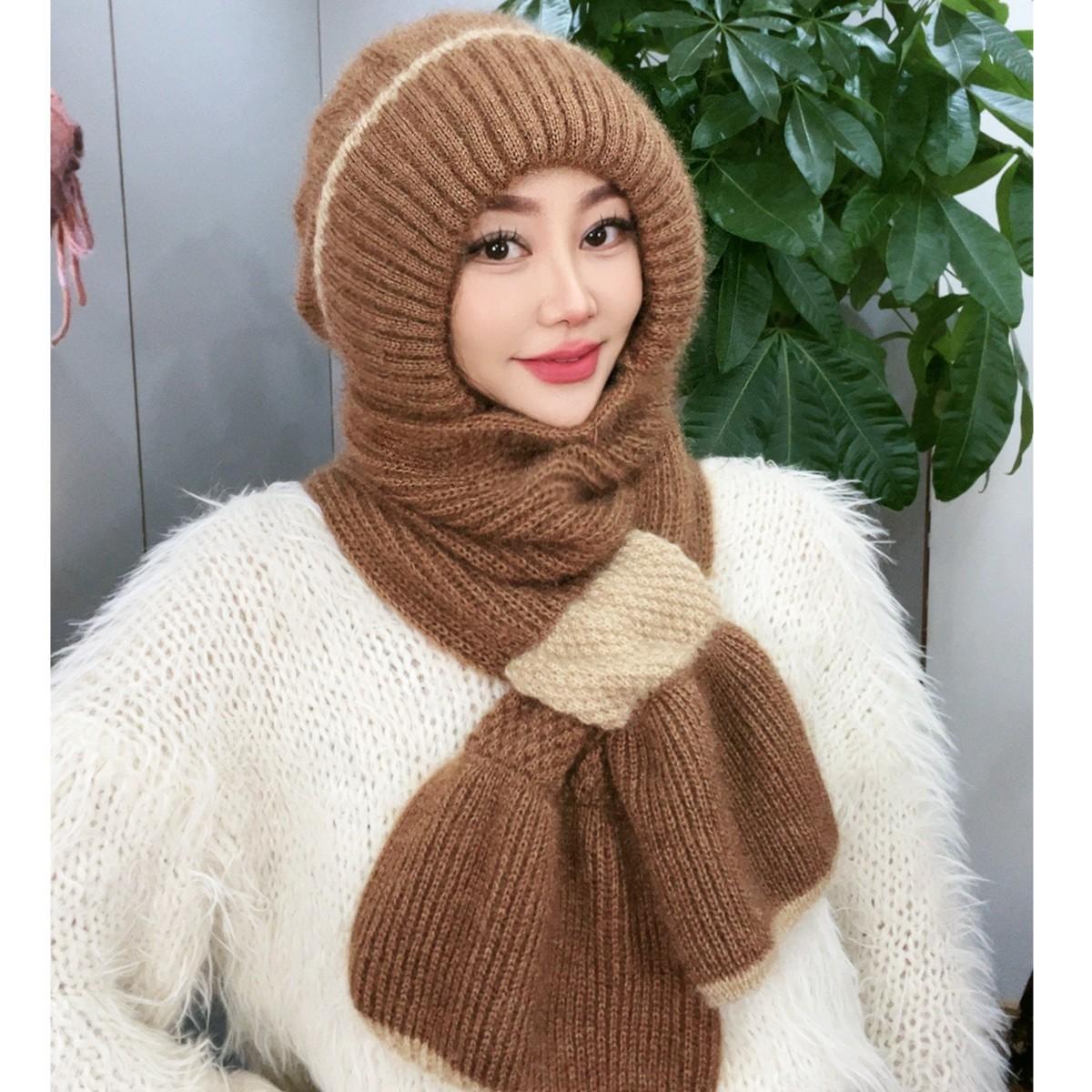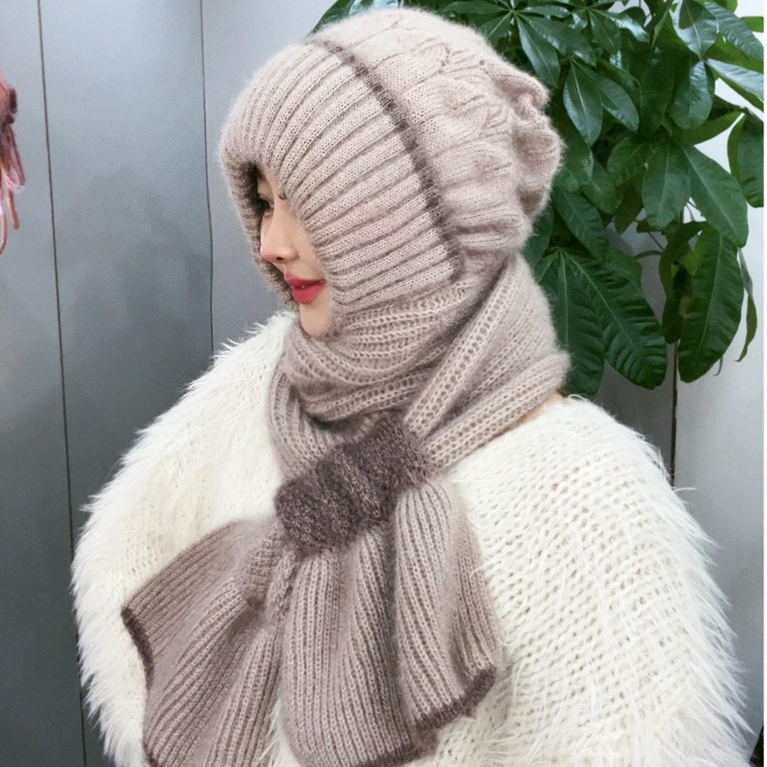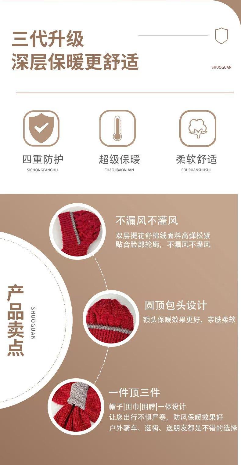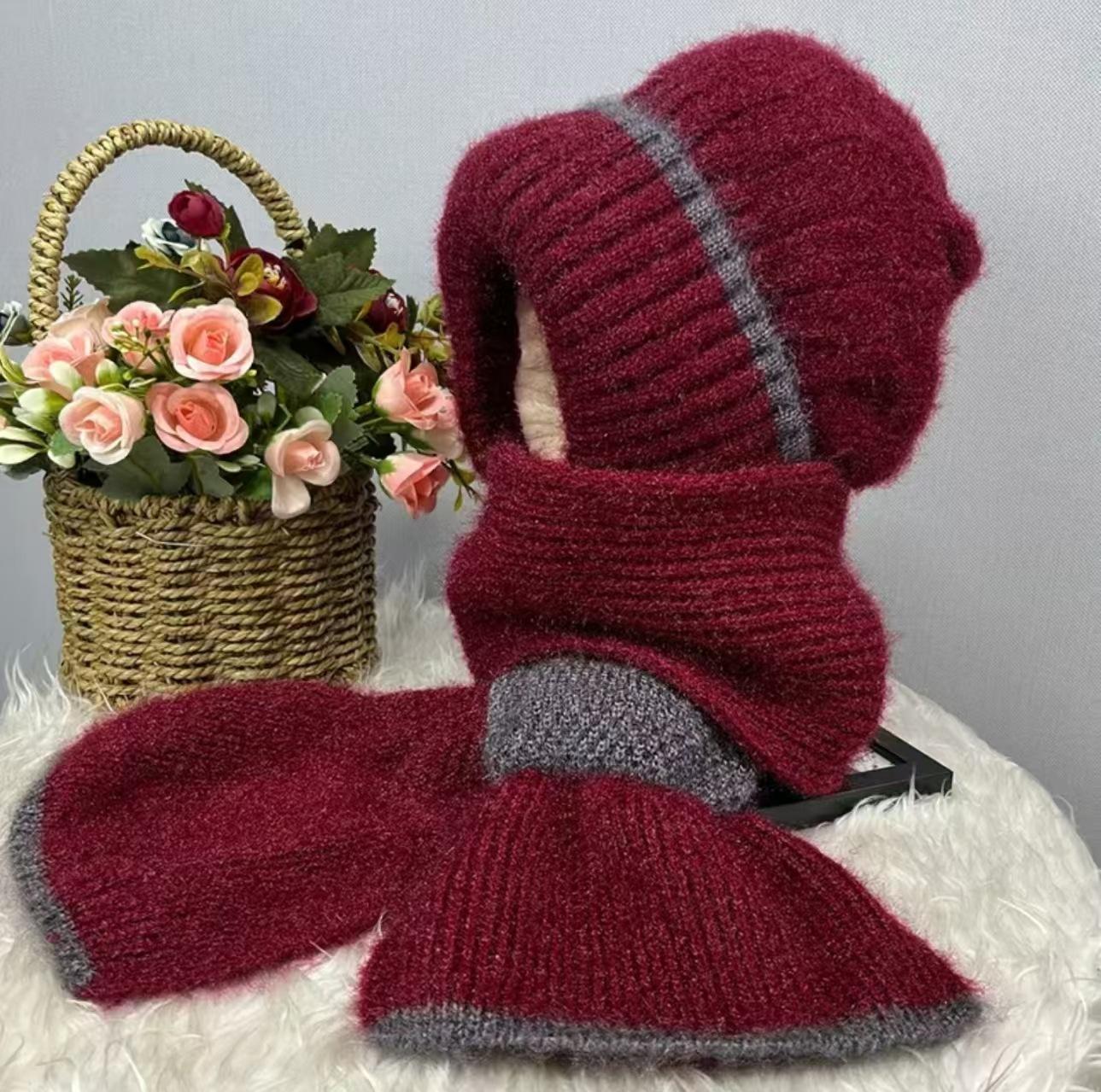 Invierno Nuevo Gorro de Punto y Bufanda Integrados Gorro Cálido, Protección para el Cuello a Prueba de Viento y con Forro Polar Gorro de Mamá, Gorro de Nieve de Poliéster a la Moda