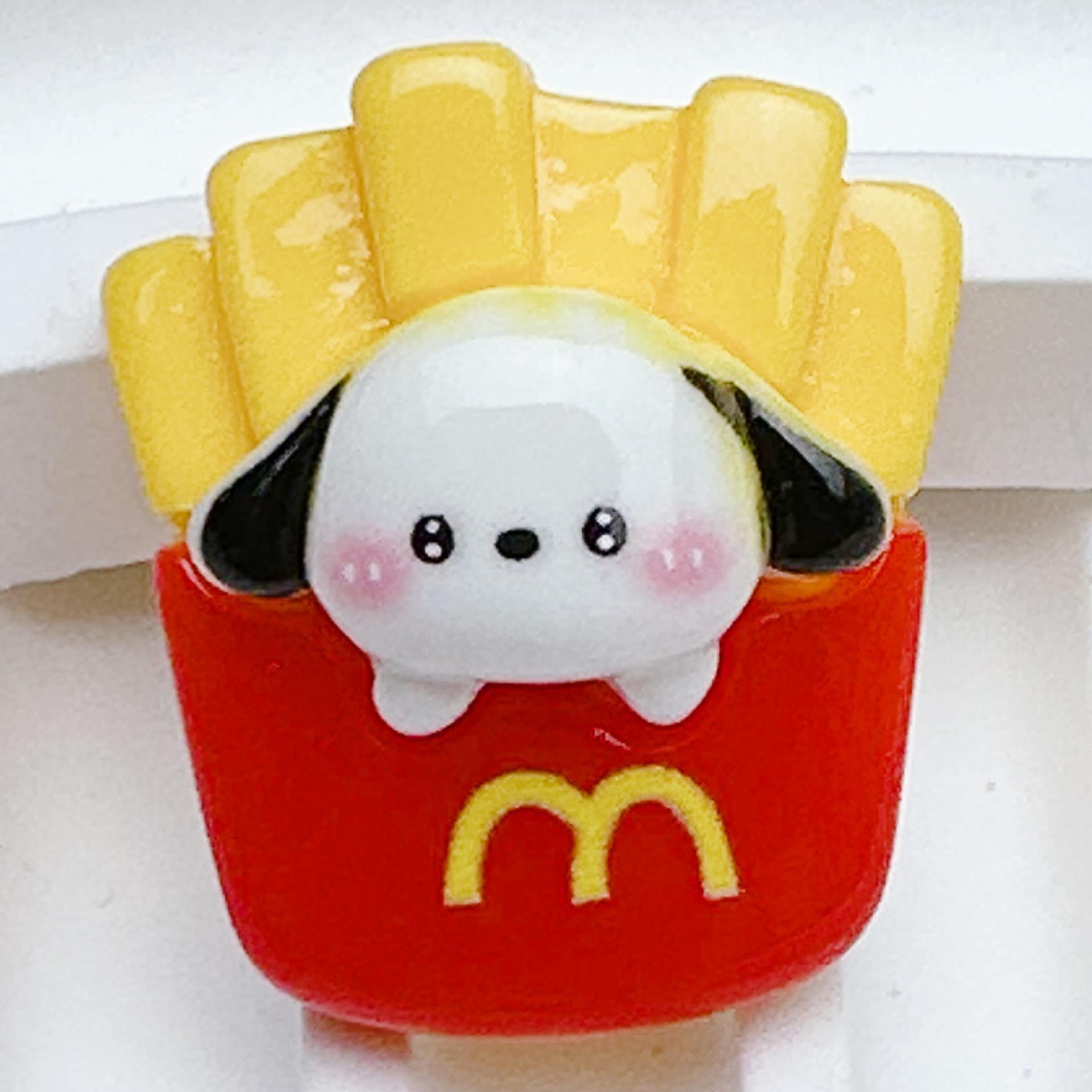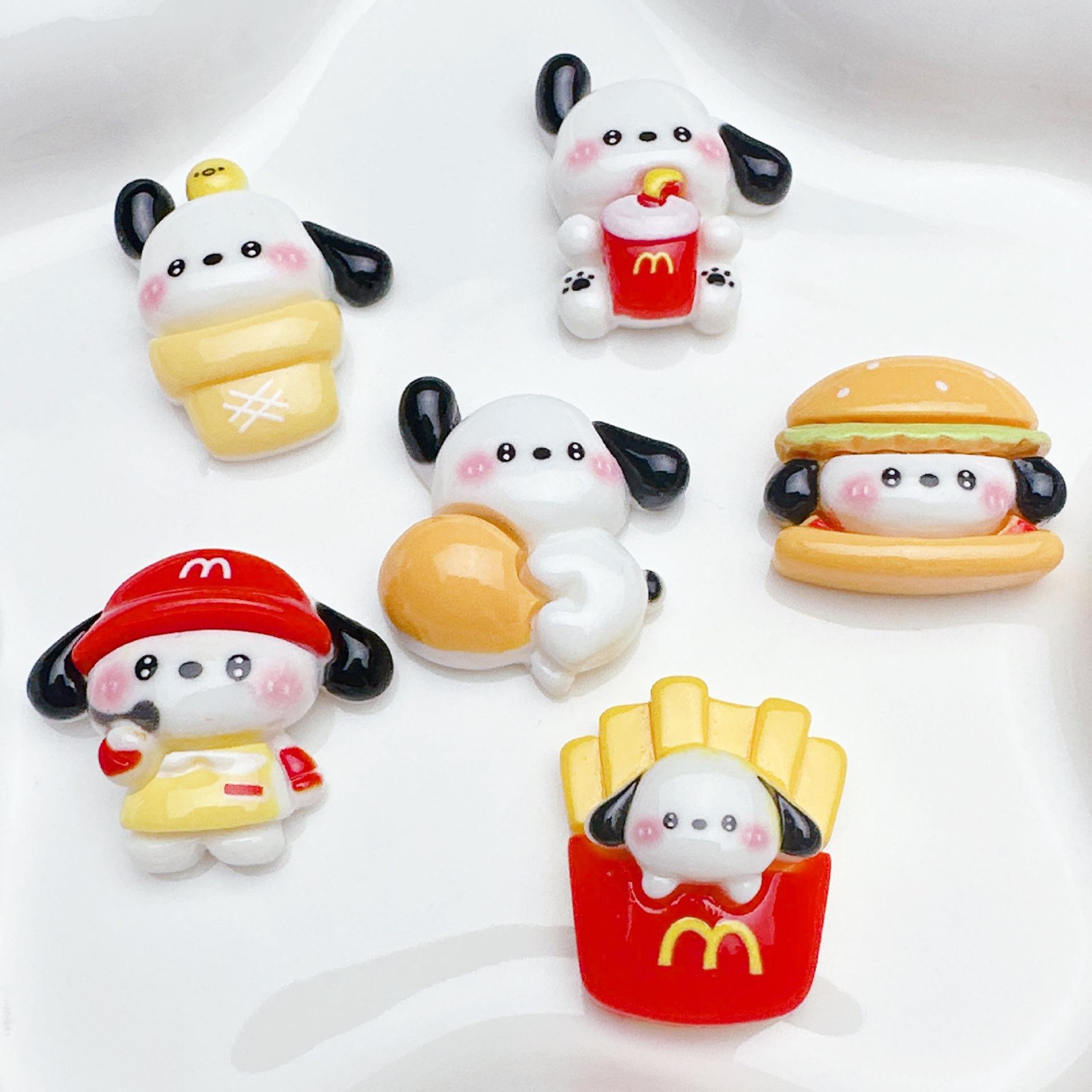 Accesorios de resina con forma de hamburguesa de perro Pacha, papas fritas, pegamento en crema, funda para teléfono, accesorios para el cabello, horquilla, adhesivo para refrigerador