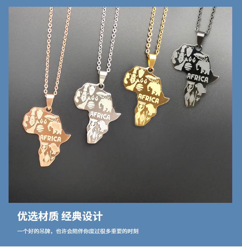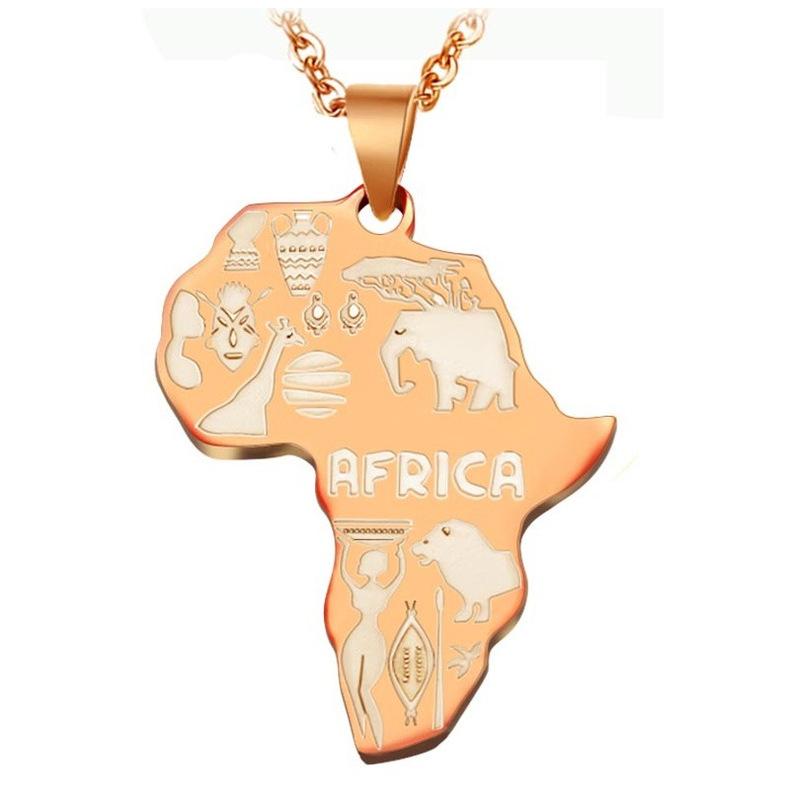 Collar personalizado de moda para hombre y mujer con colgante de elefante, jirafa y mapa de África, estilo hip hop, animal salvaje.