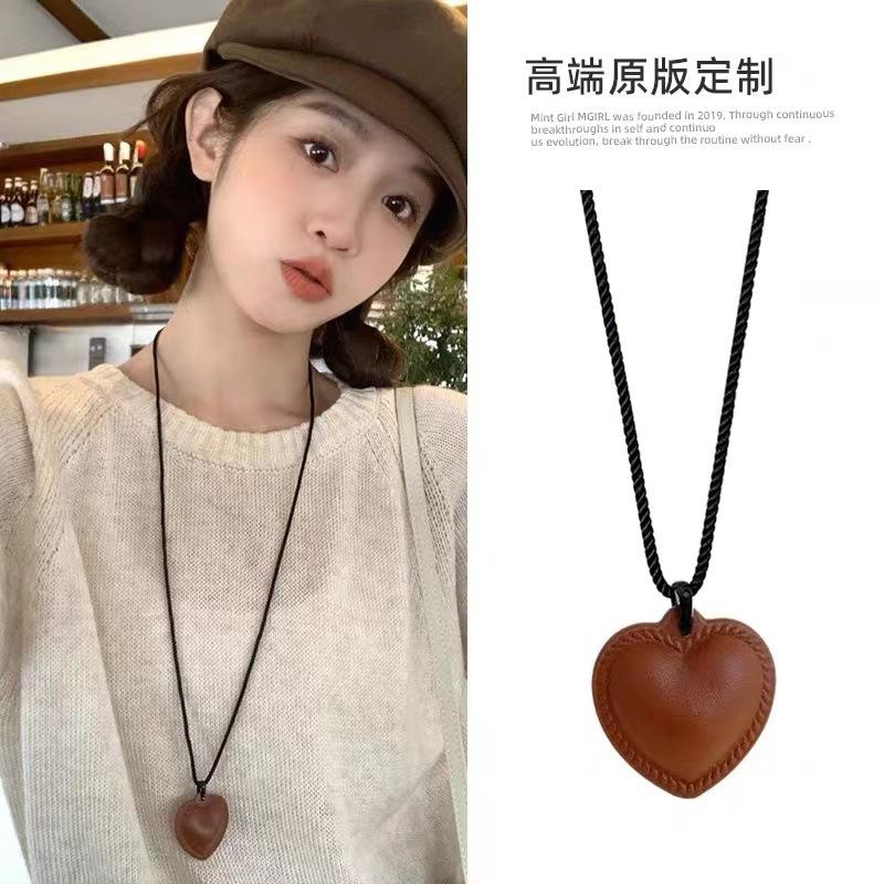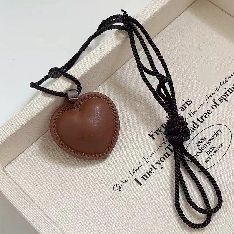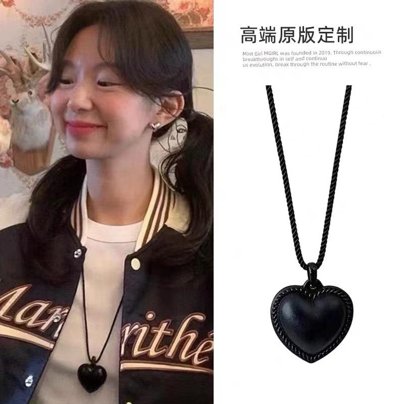 Collar de cuerda de cáñamo con forma de corazón negro, estilo coreano, ajustable, con forma de corazón de melocotón, cadena de clavícula sexy y moderna, estilo nicho femenino.