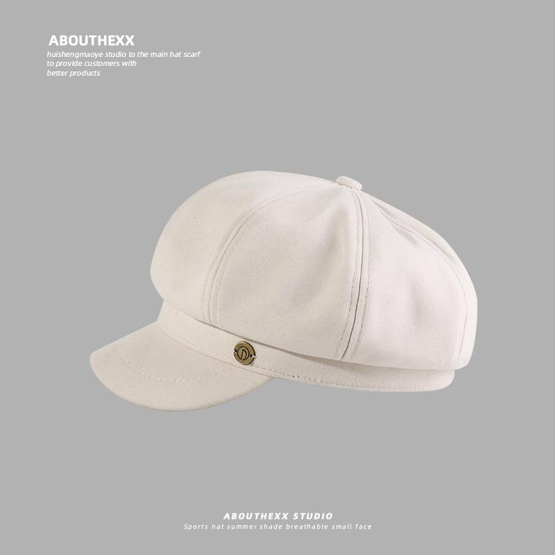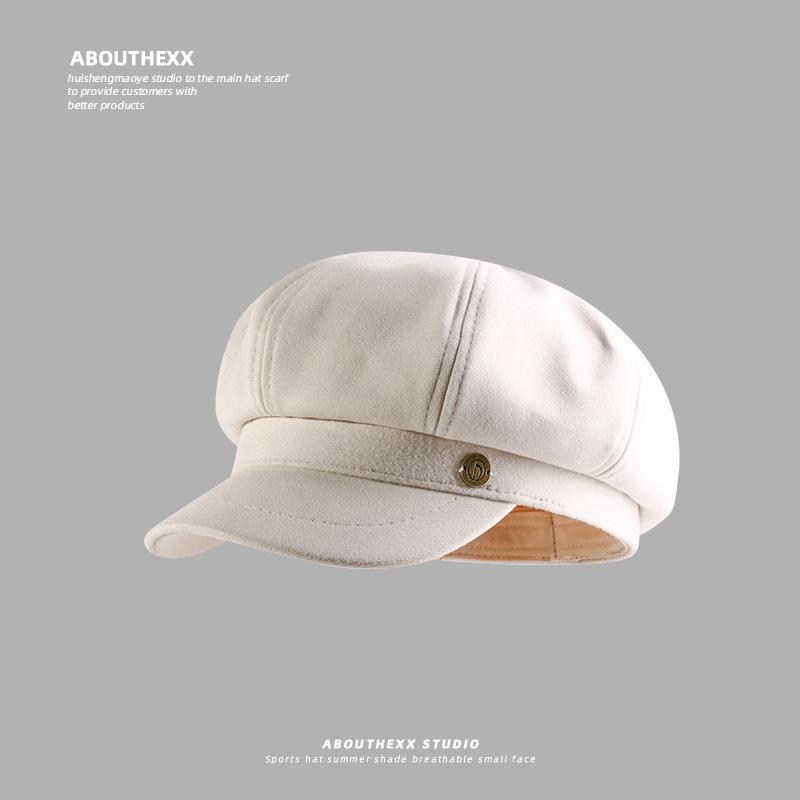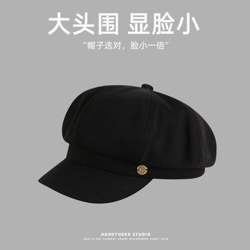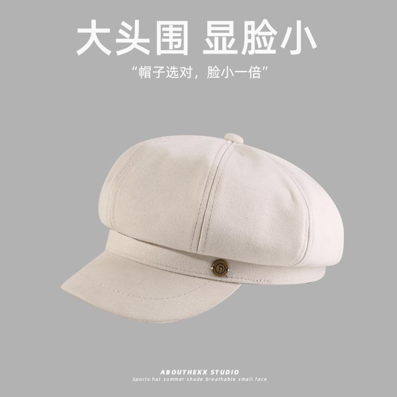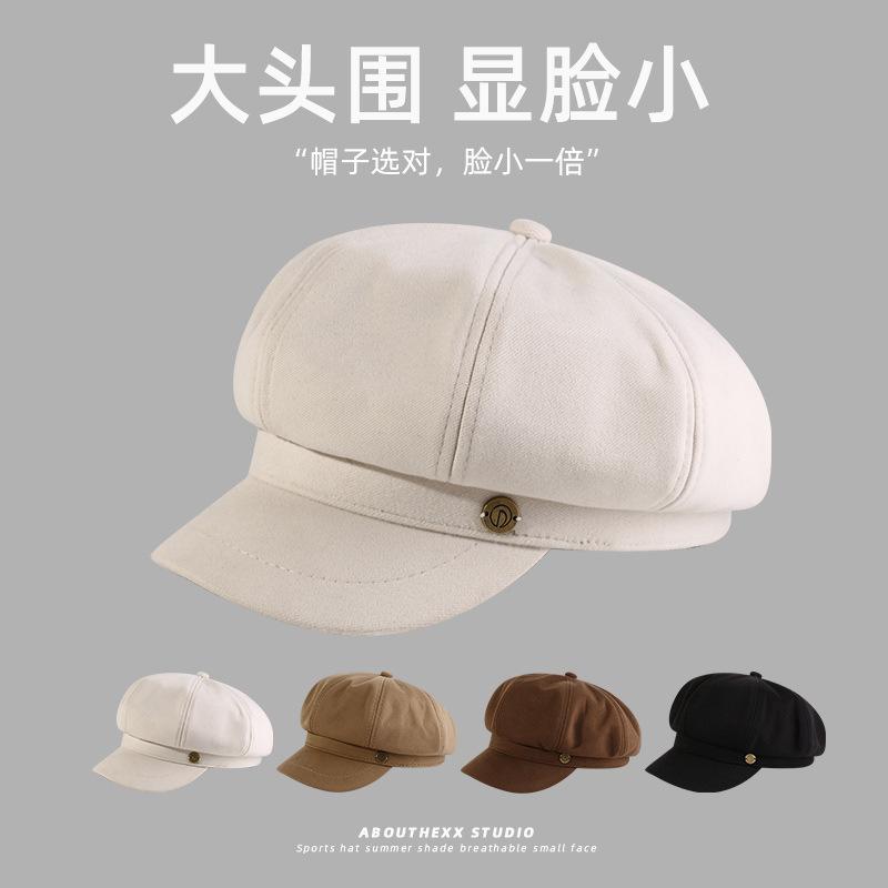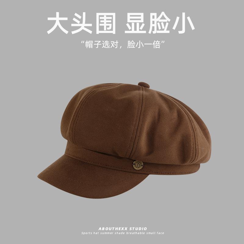 Gorra de otoño e invierno con cabeza grande, gorra octogonal literaria británica para niños, boina con lengua de pato, gorra de vendedor de periódicos que muestra la cara.