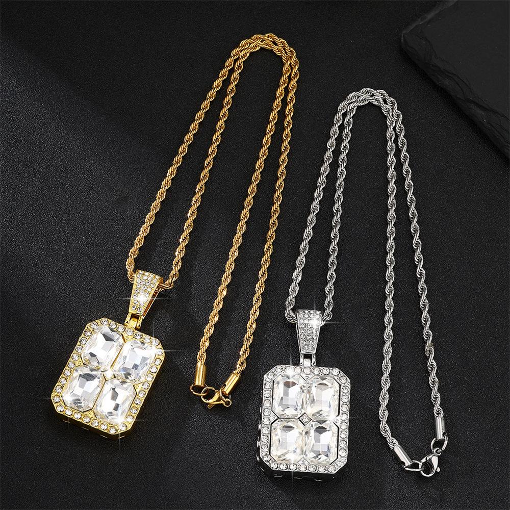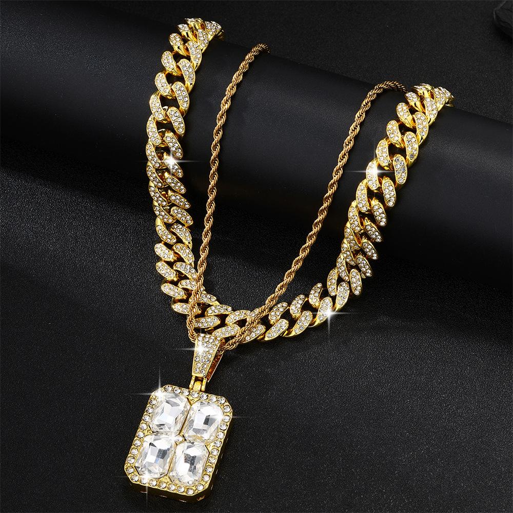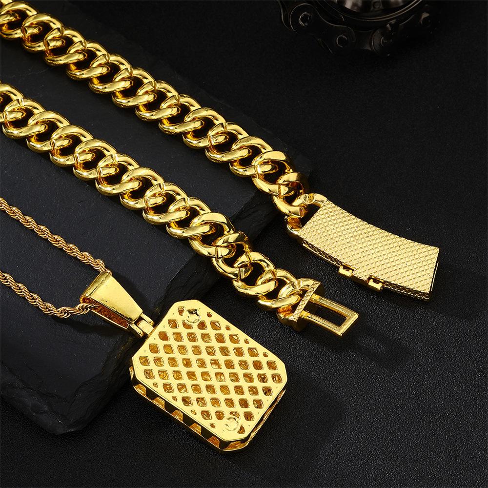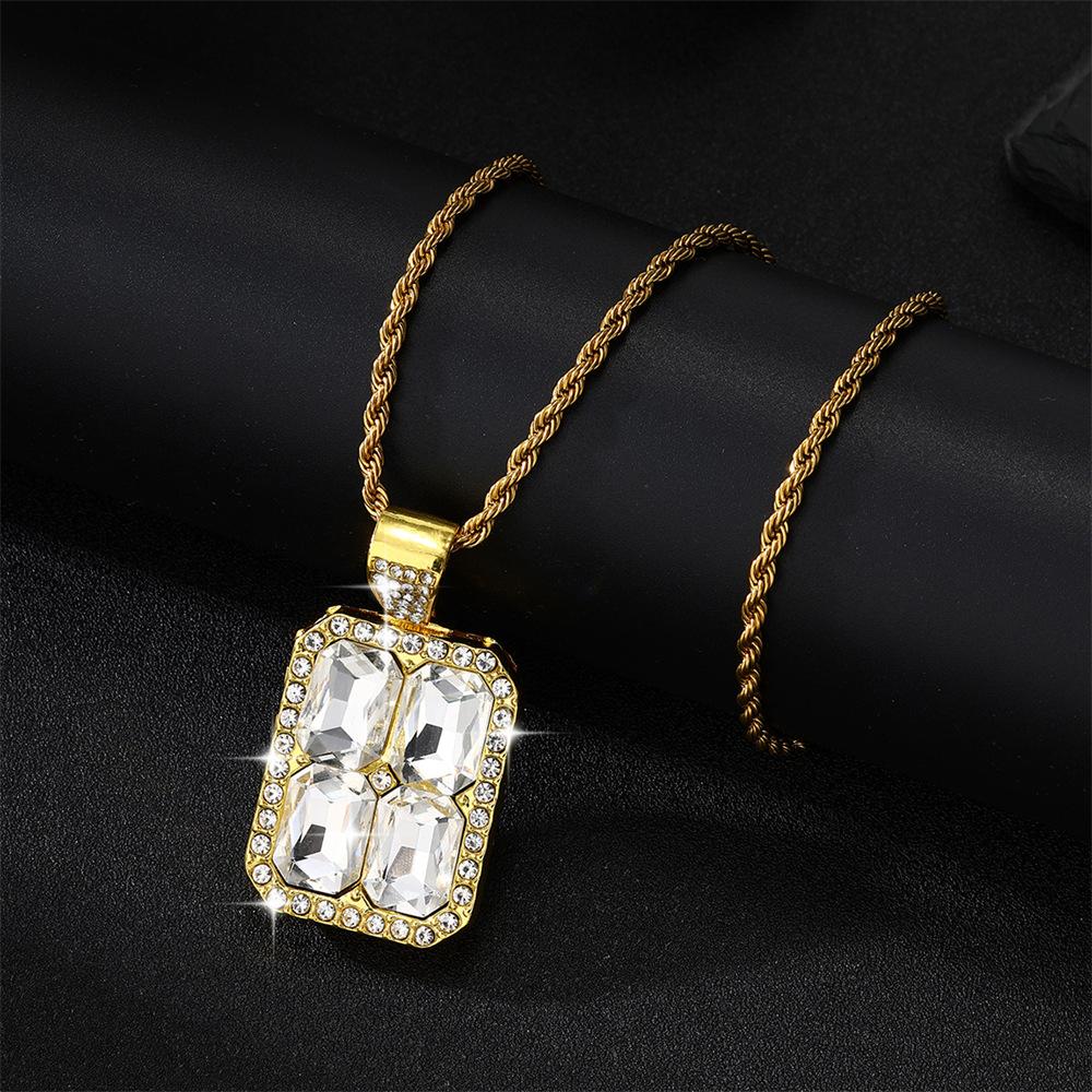 Collar con colgante de circonita cuadrada de oro de 18 quilates para hombre, joyería de cadena cubana de hip-hop de moda europea y americana, venta al por mayor transfronteriza