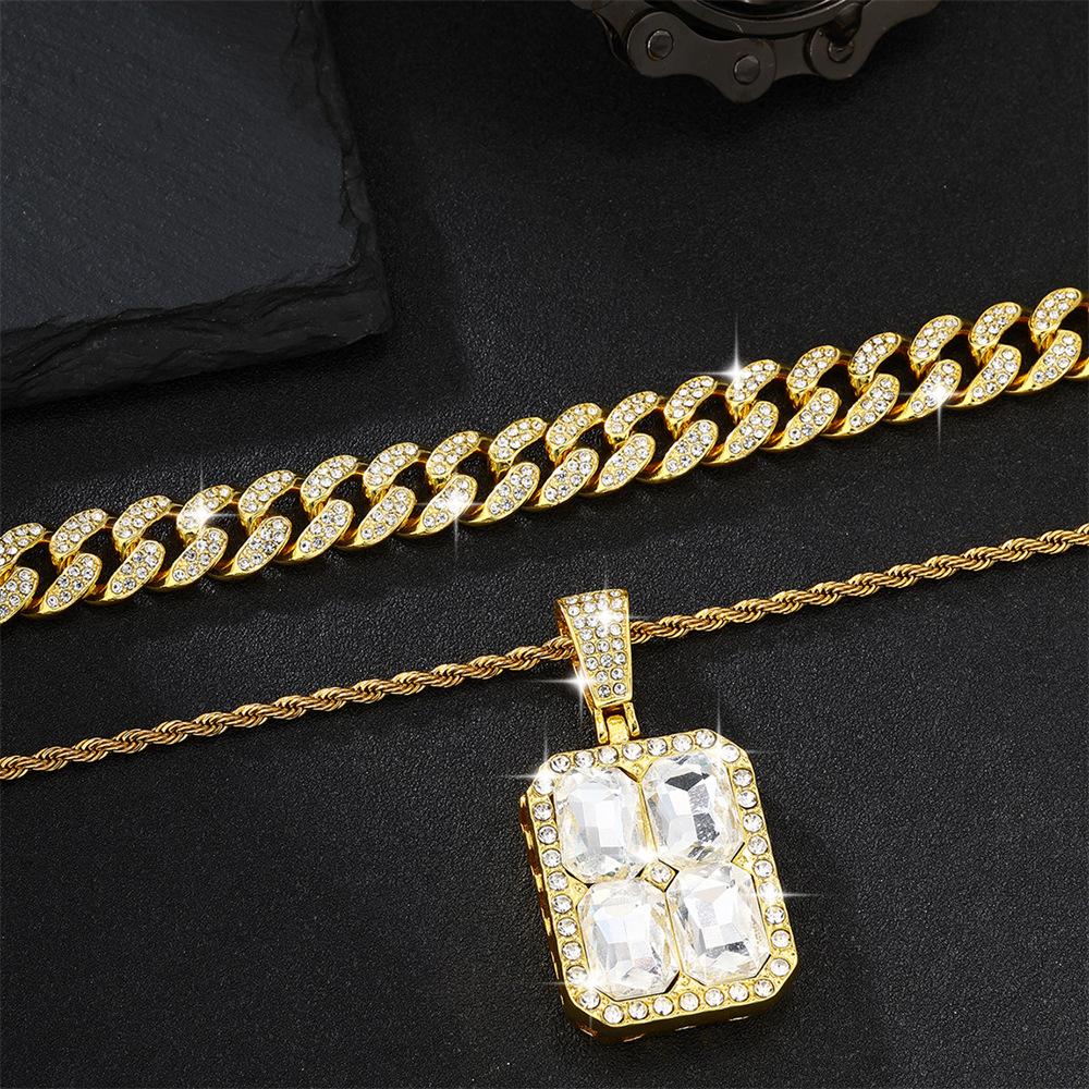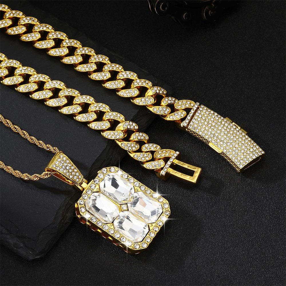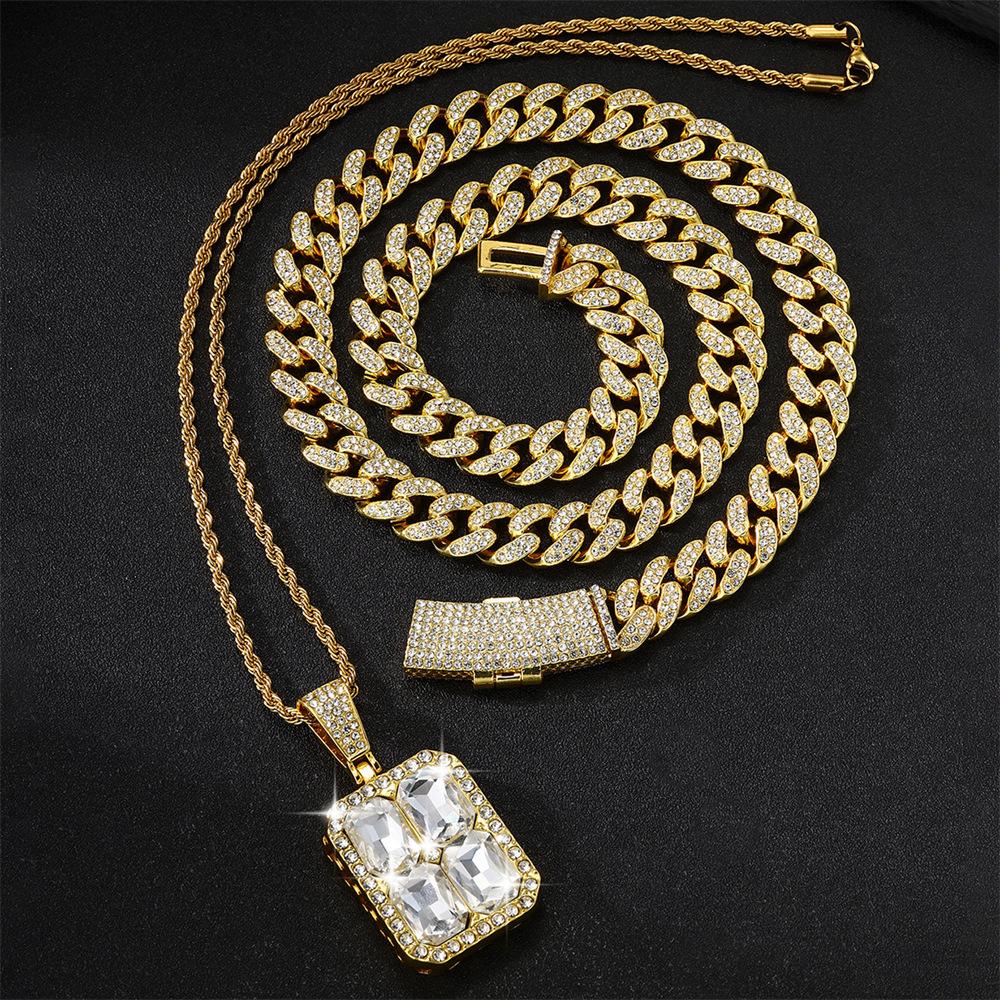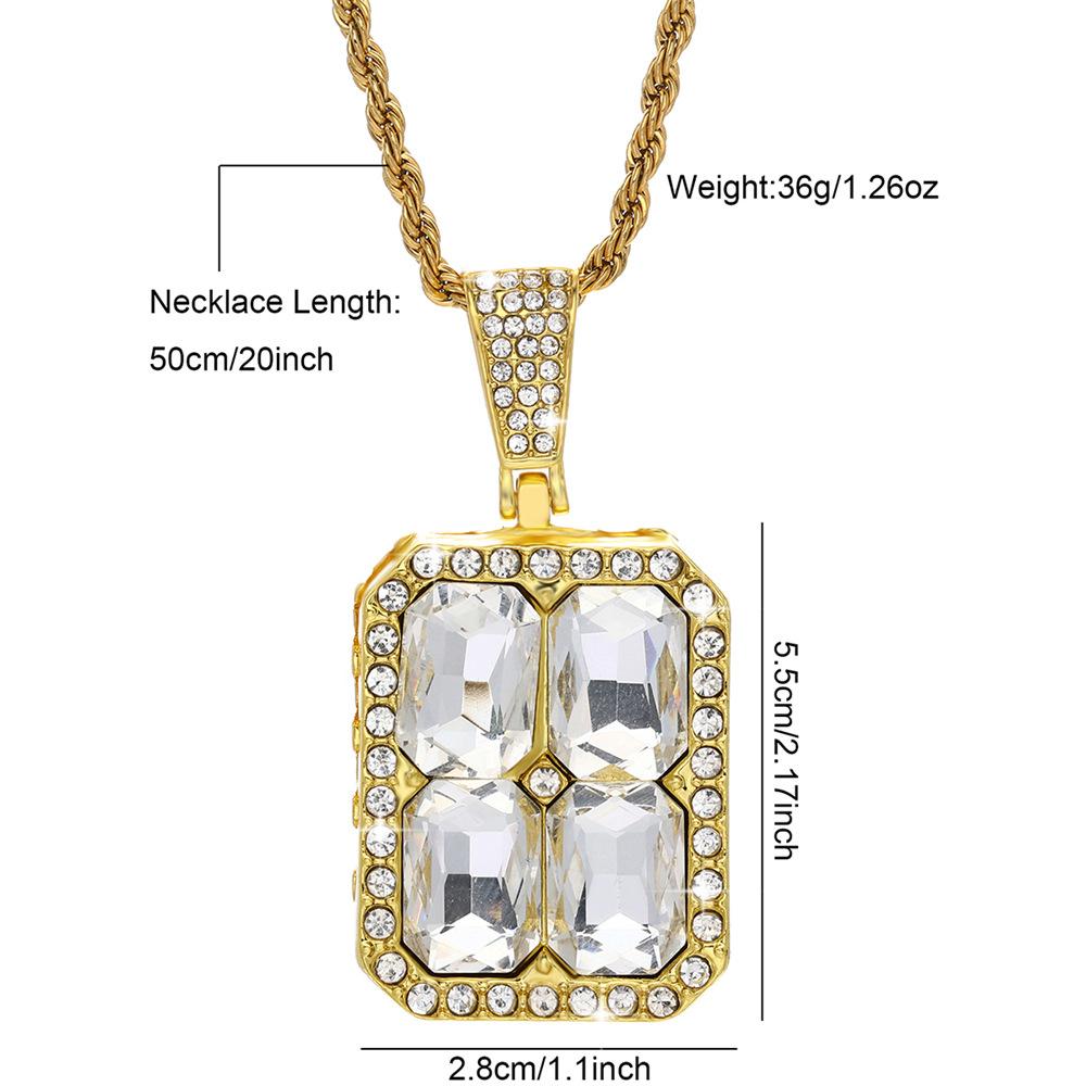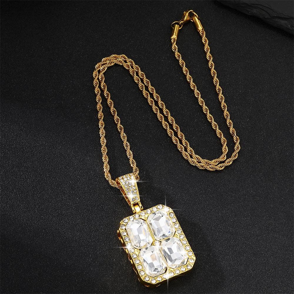 Collar con colgante de circonita cuadrada de oro de 18 quilates para hombre, joyería de cadena cubana de hip-hop de moda europea y americana, venta al por mayor transfronteriza