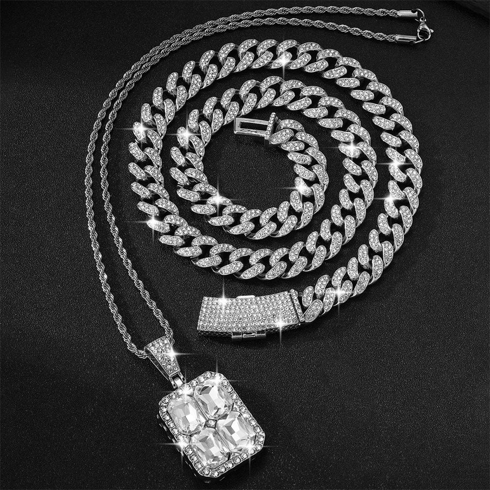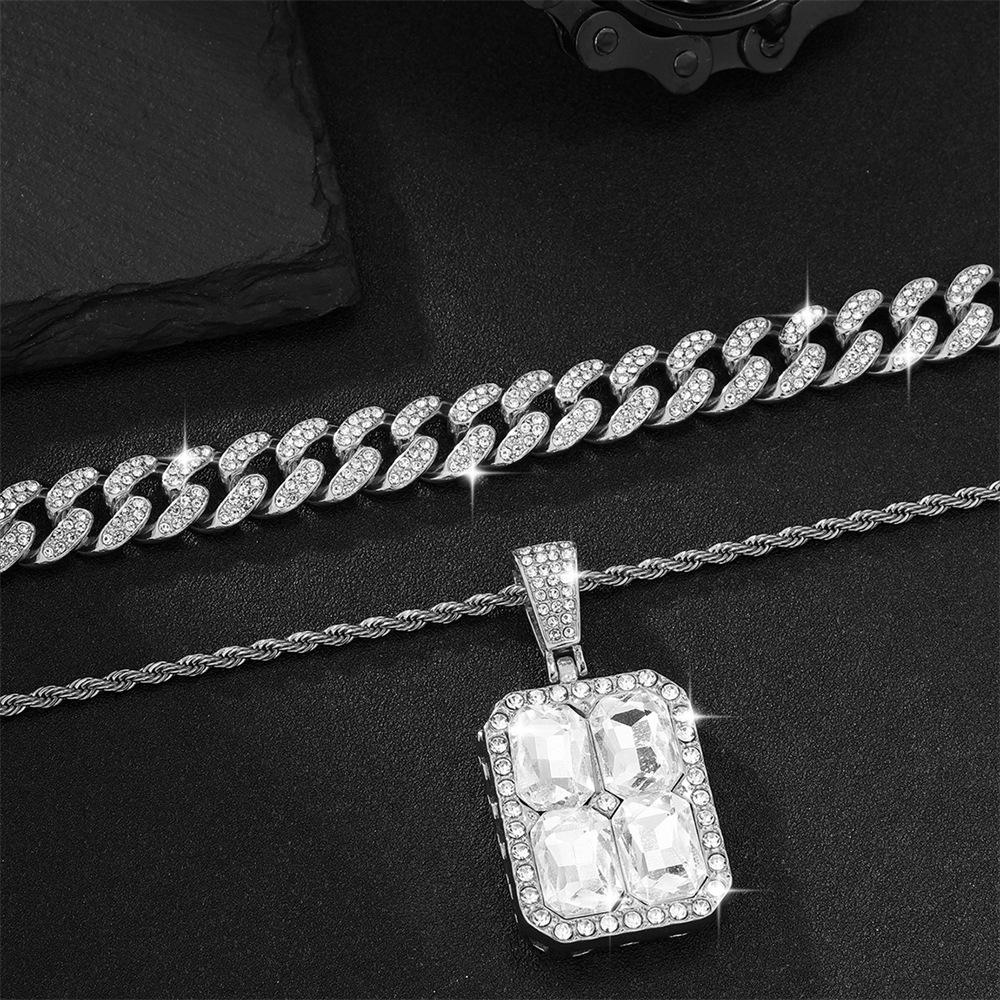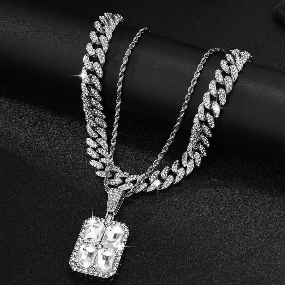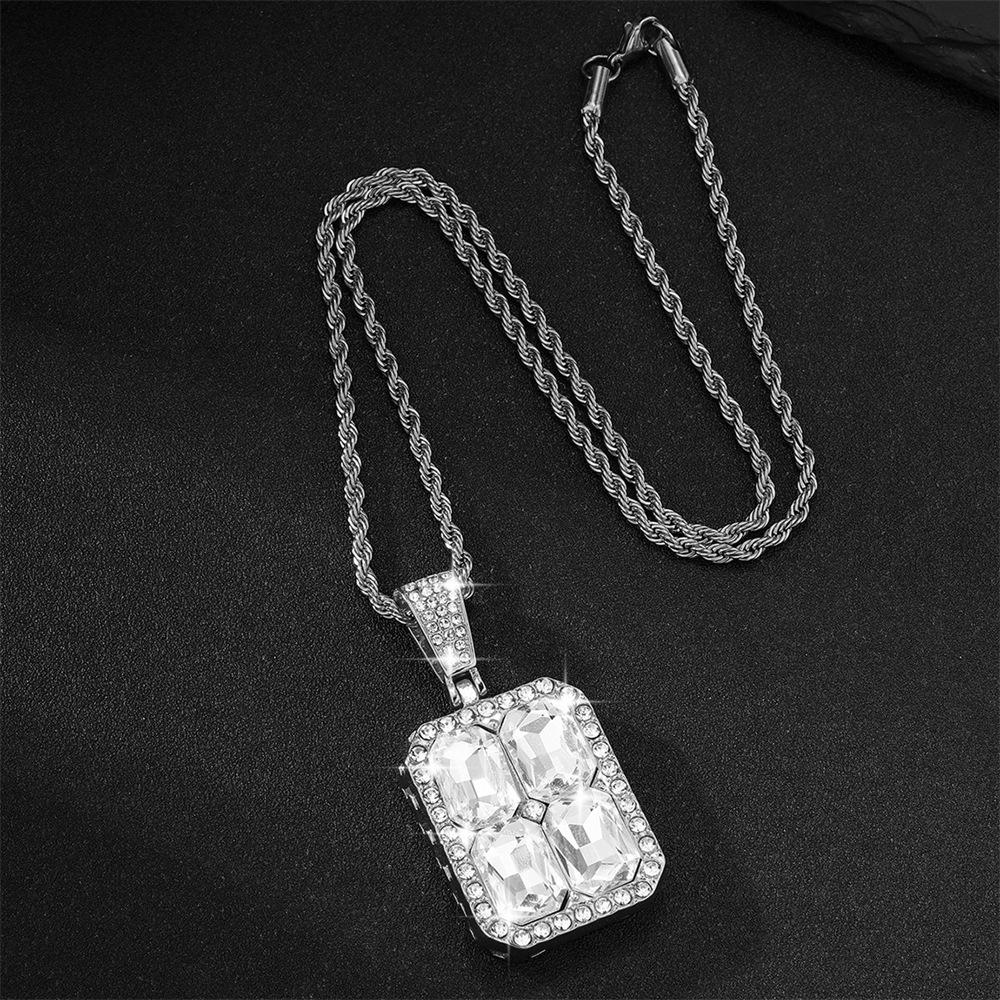 Collar con colgante de circonita cuadrada de oro de 18 quilates para hombre, joyería de cadena cubana de hip-hop de moda europea y americana, venta al por mayor transfronteriza