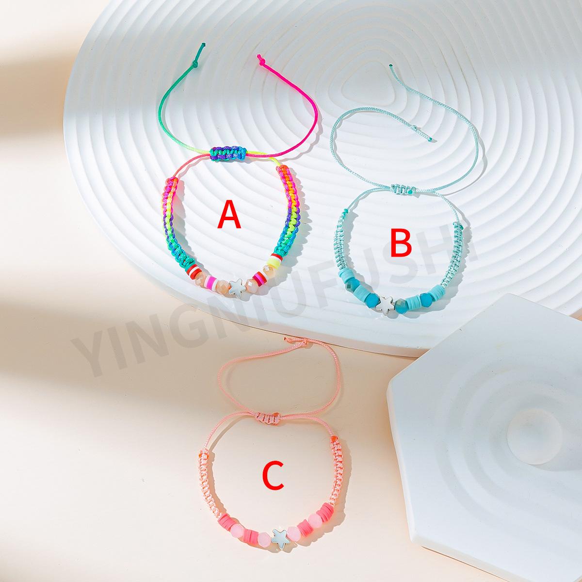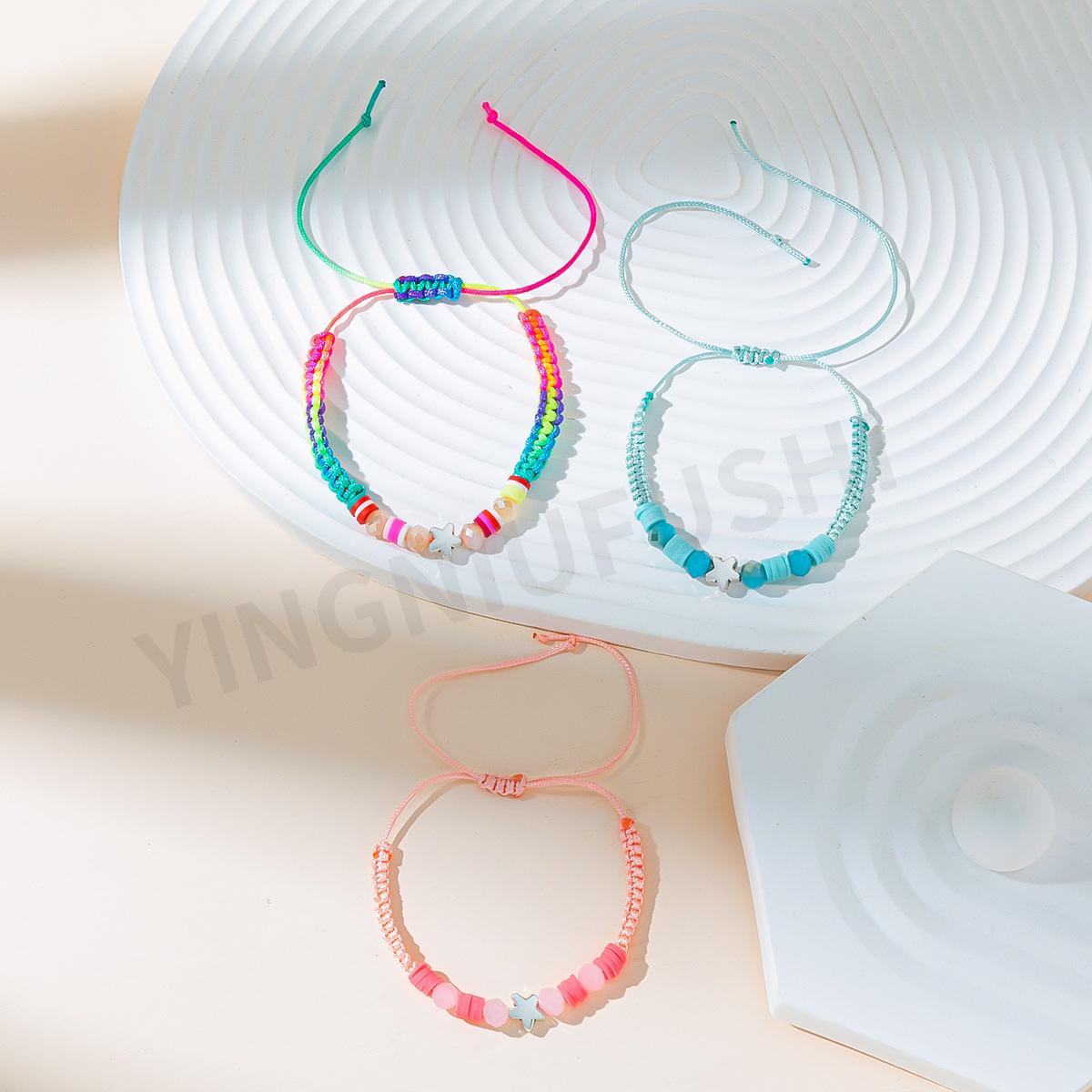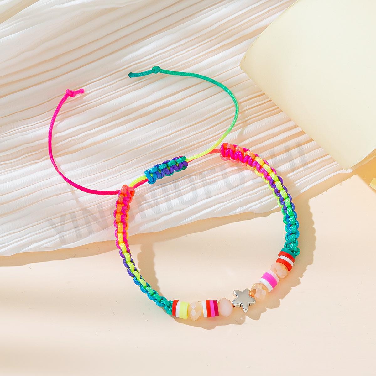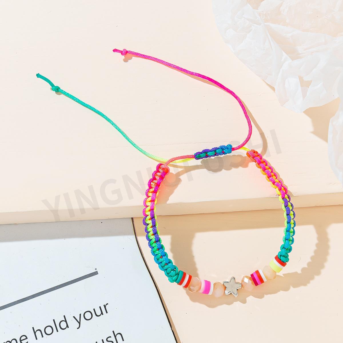 Pulsera tejida a mano con cuerda colorida europea y americana para mujer, estilo étnico, ajustable, linda, colorida, de cristal, al por mayor