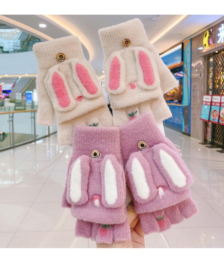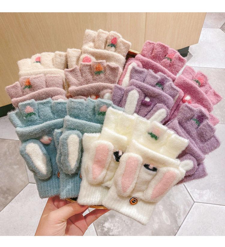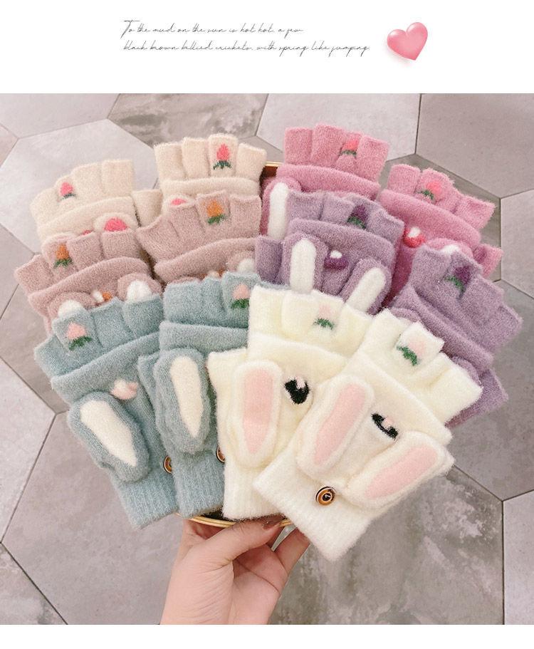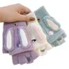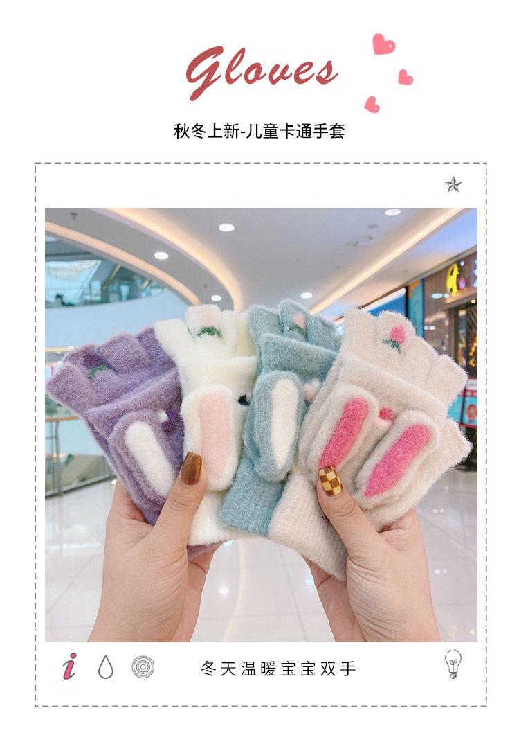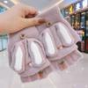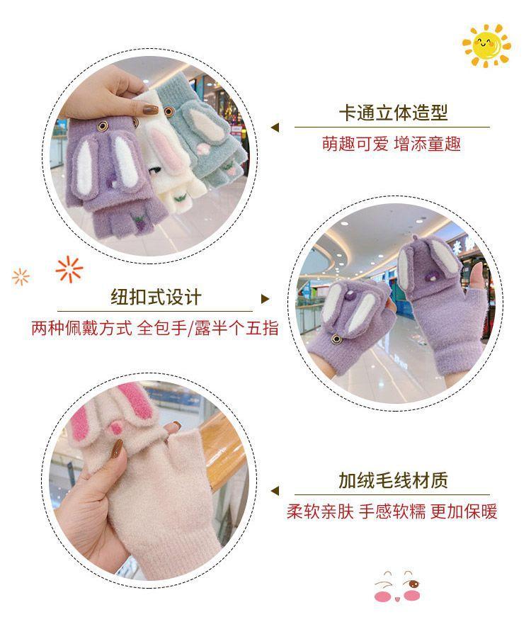 Guantes para niños, otoño e invierno, cálidos, con tapa abatible, de medio dedo, para escribir, para niños y niñas, con dibujos animados de cinco dedos, de lana, bonitos, para bebés