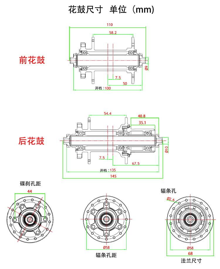 Buje de bicicleta de montaña Shikra, buje de eje de barril de liberación rápida Peilin de 4 piezas, buje de freno de disco de seis clavos y 32 orificios