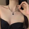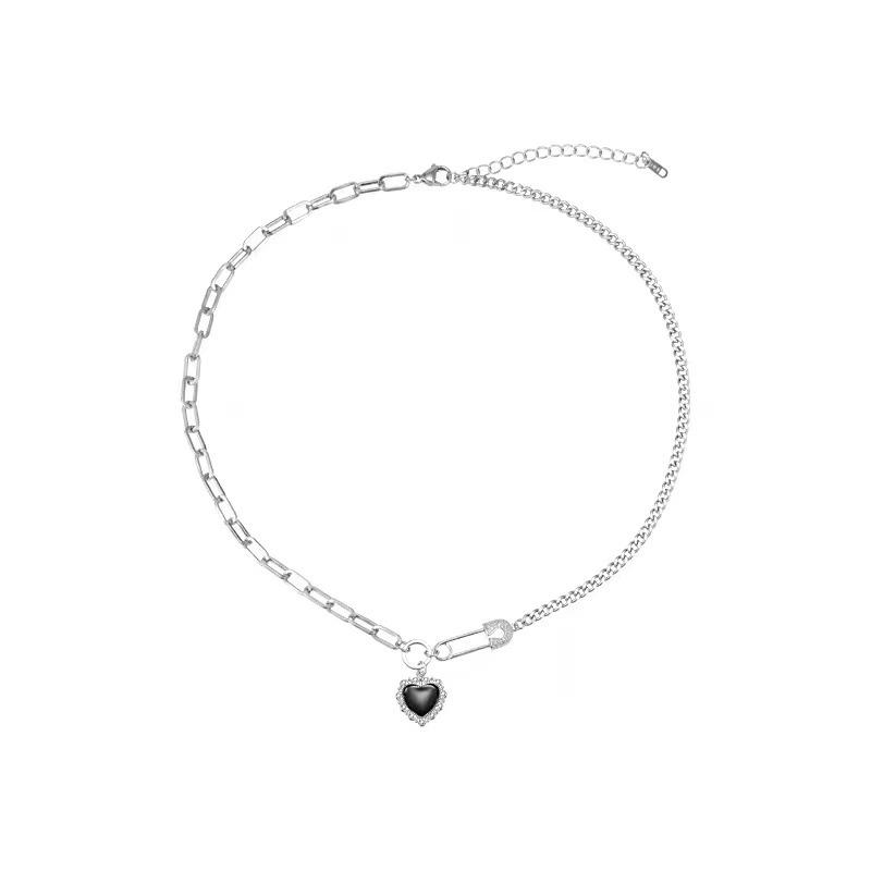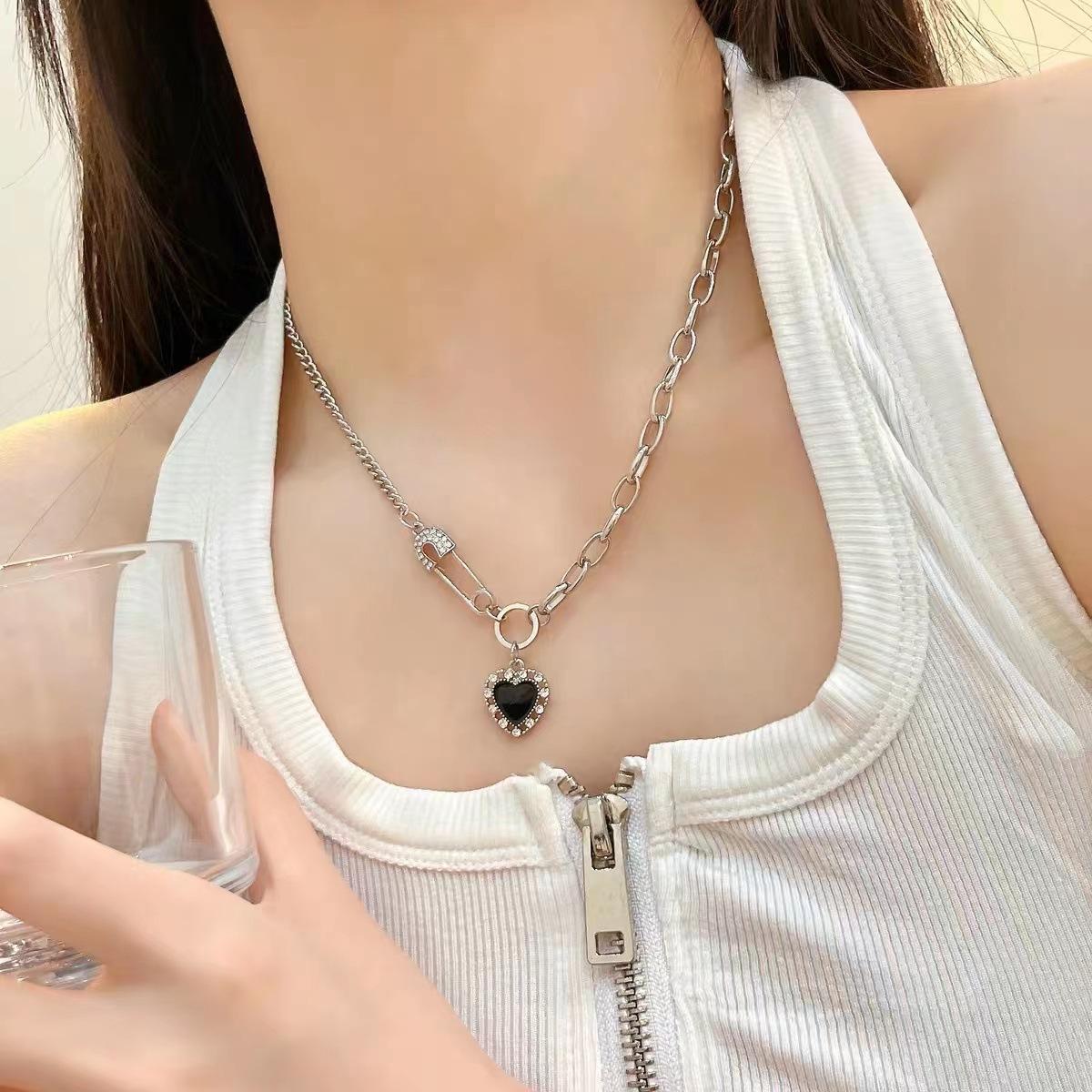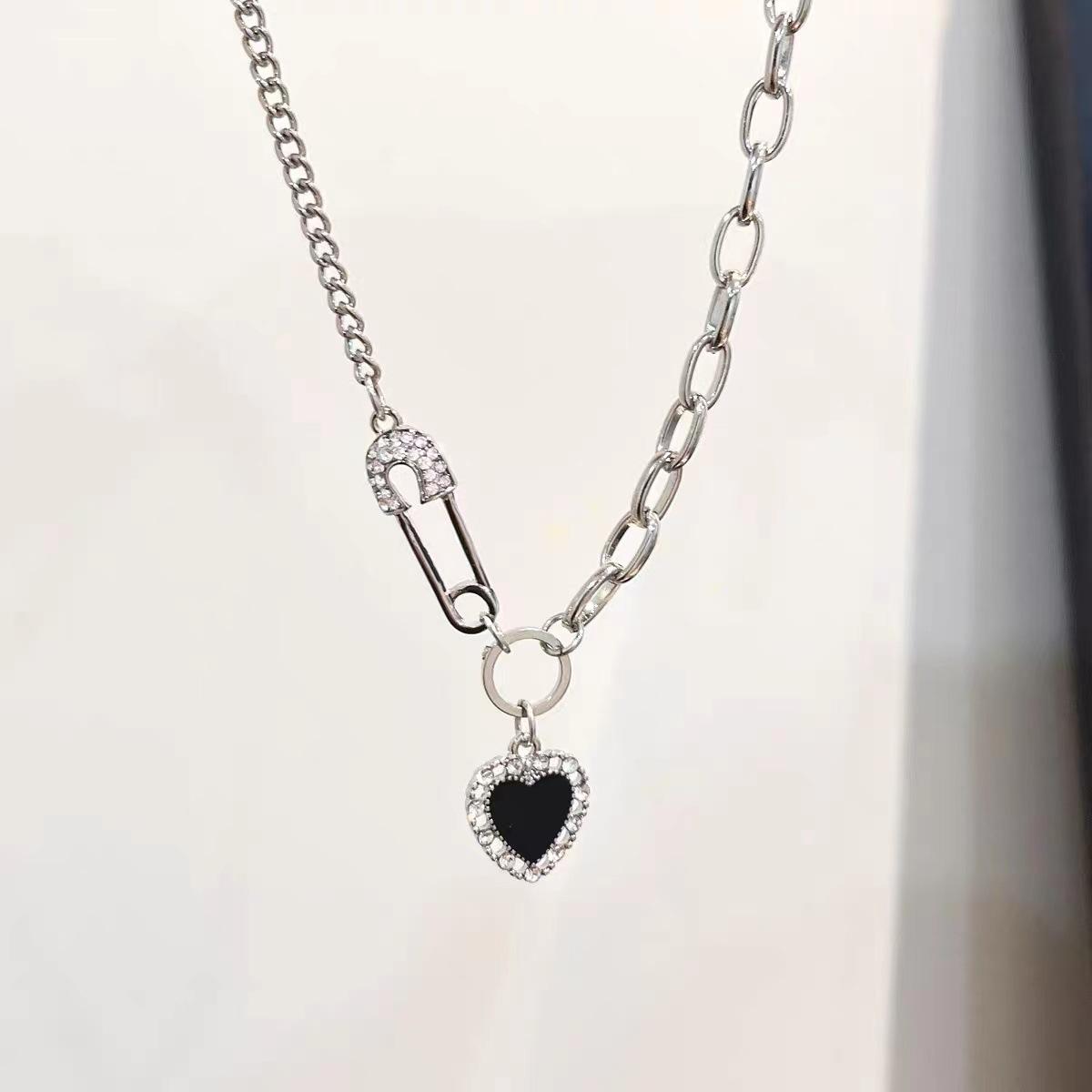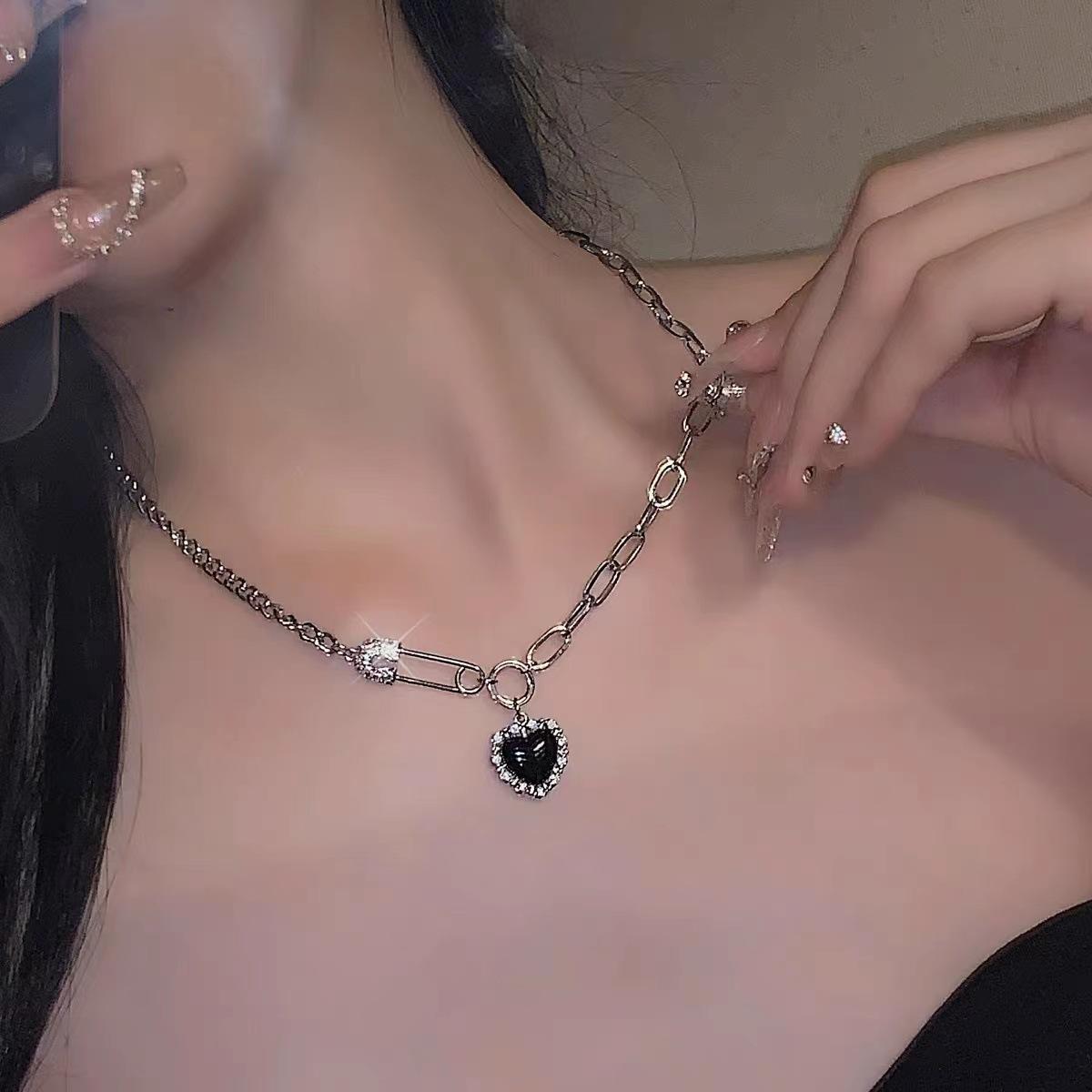 2025 Nuevo Retro Dulce y Genial Corazón Negro Costuras Pin Collar Colgante de Alta Gama Cadena Clavícula para Mujer