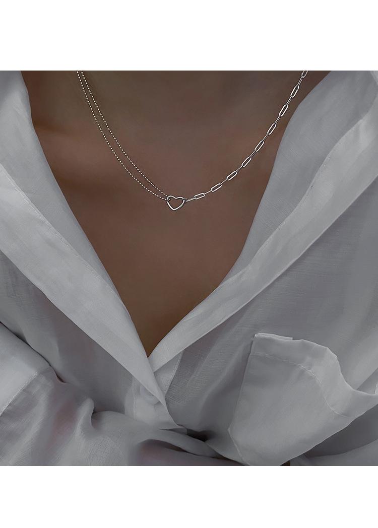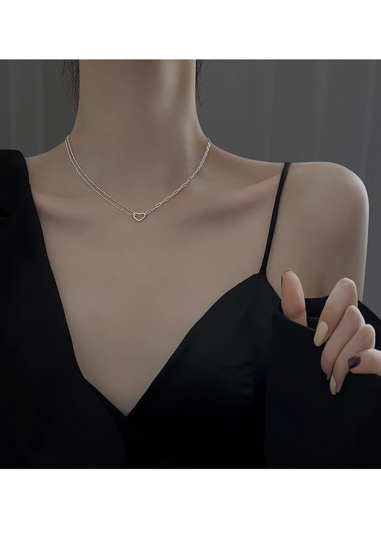 Nuevo collar de amor para mujer, diseño de nicho, ligero, de lujo, combina con todo, moda, personalidad simple, cadena de clavícula en forma de corazón, tendencia al por mayor