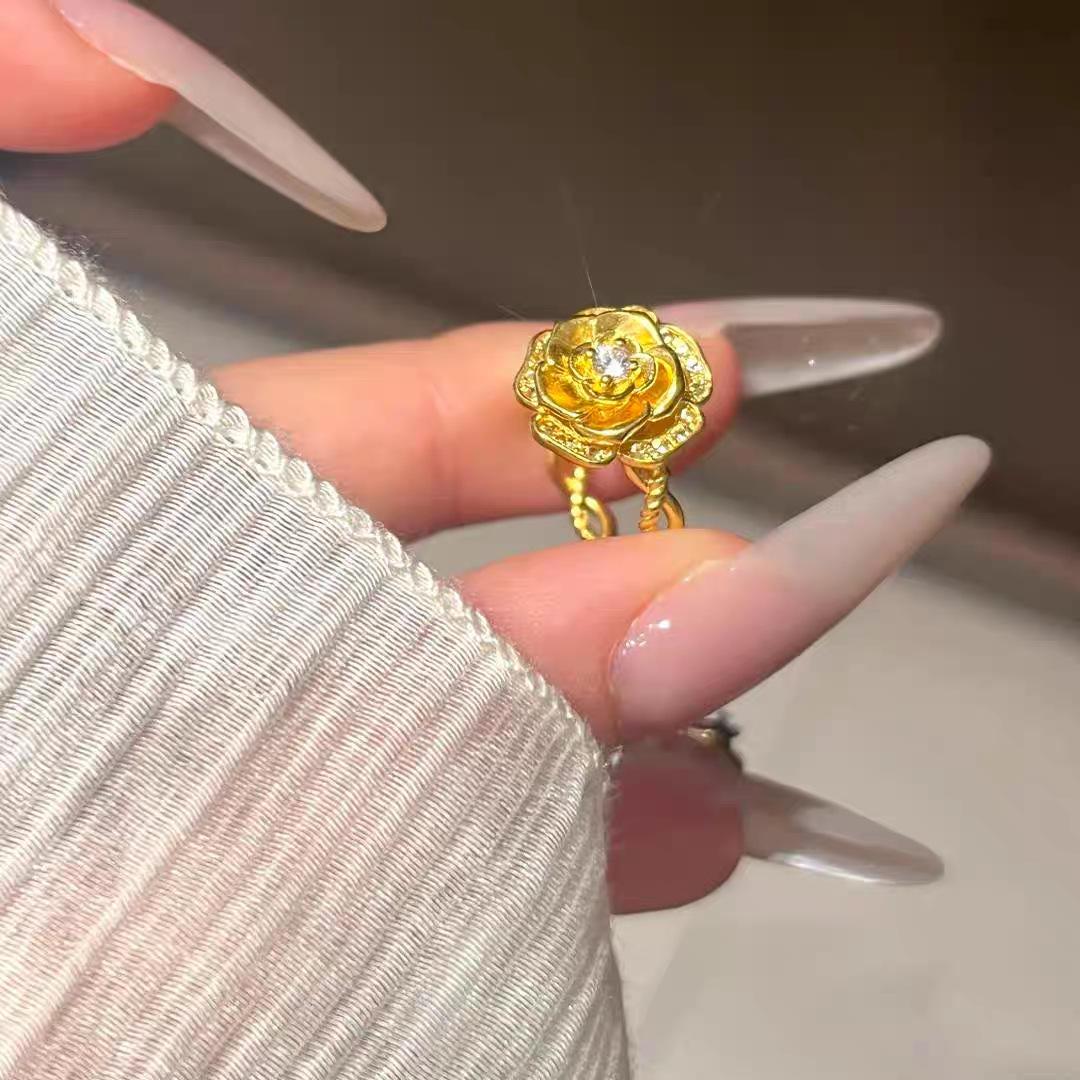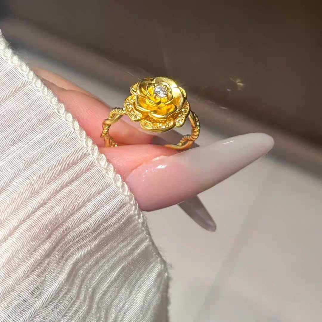 Anillo Audrey Rose para Mujer Color Oro Imitación Arenas de Vietnam Moda Anillo Abierto para Dedo Colgante de Rosa Joyería