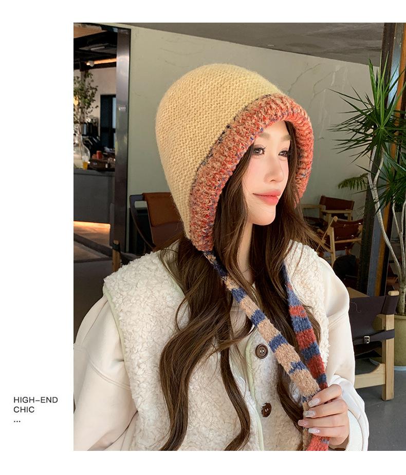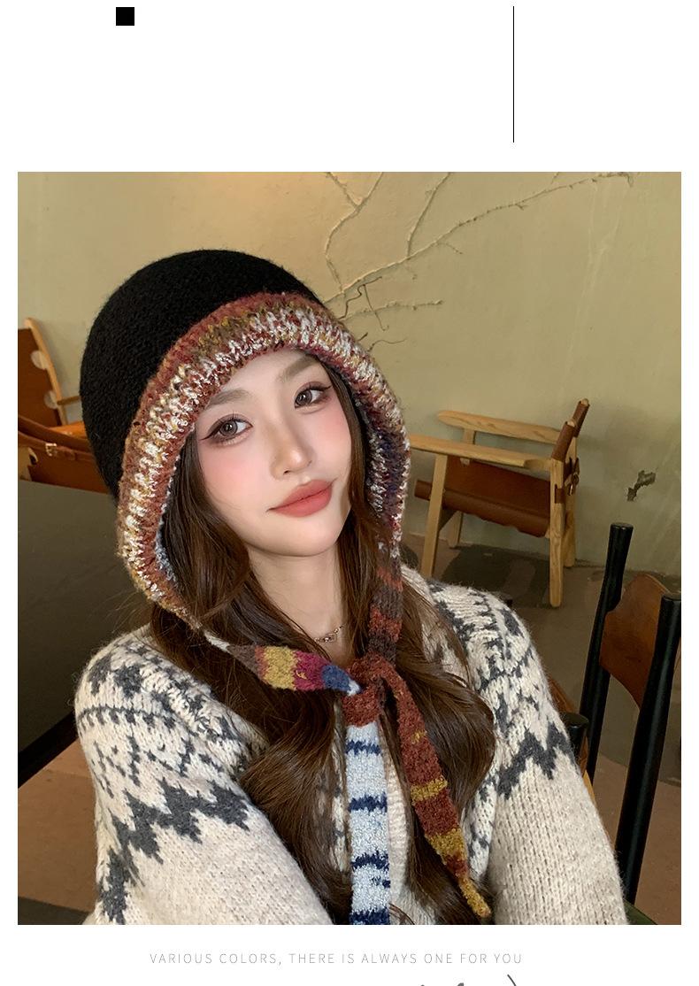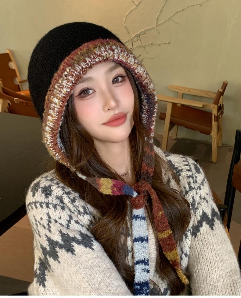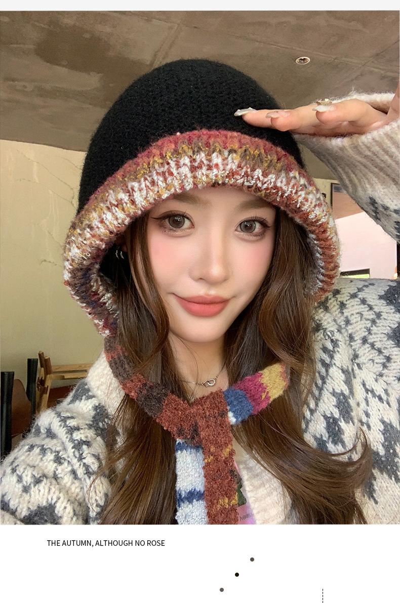 Gorro de lana de punto con cordón colorido de dopamina para mujer, estilo coreano, otoño e invierno, cálido, con protección para los oídos, 2024