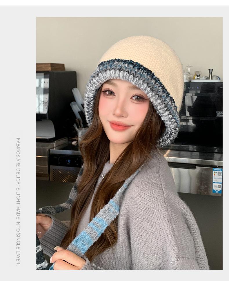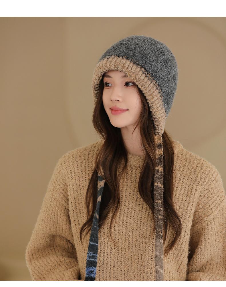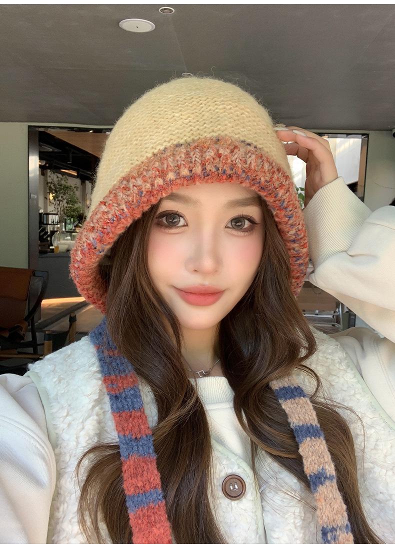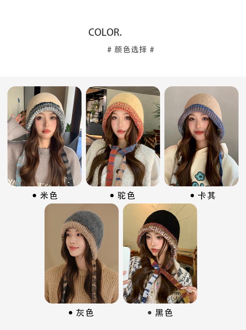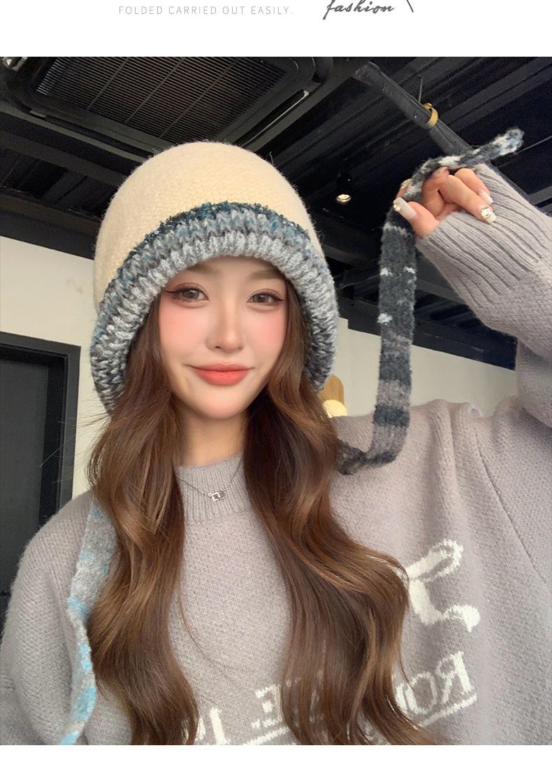 Gorro de lana de punto con cordón colorido de dopamina para mujer, estilo coreano, otoño e invierno, cálido, con protección para los oídos, 2024