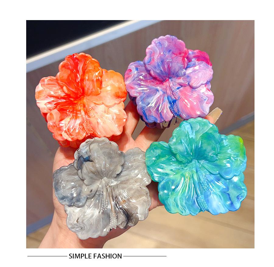 Nuevo clip de flor de huevo transfronterizo horquilla transparente hielo textura mármol pinza de tiburón para el cabello de alta gama accesorios para el cabello