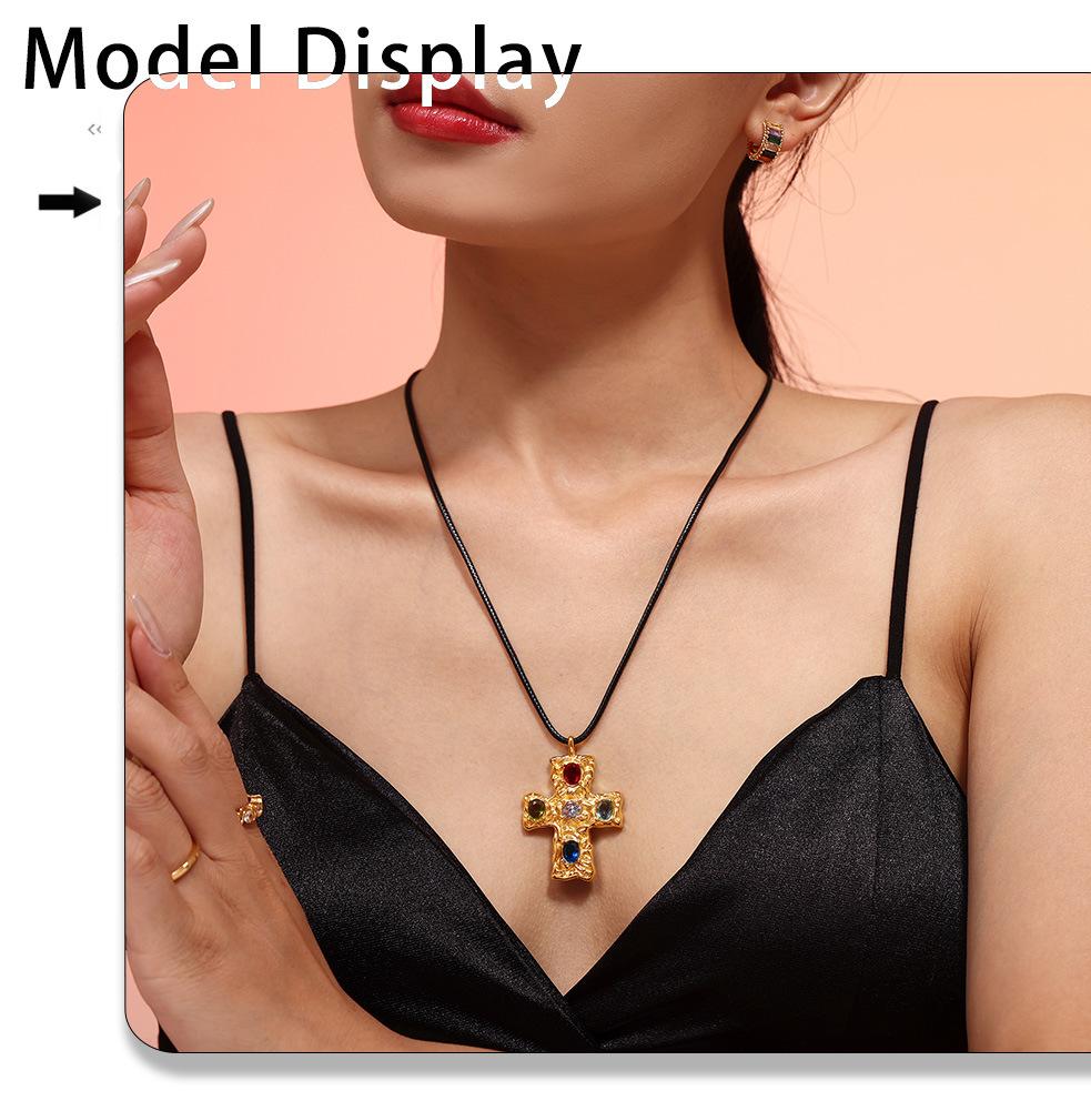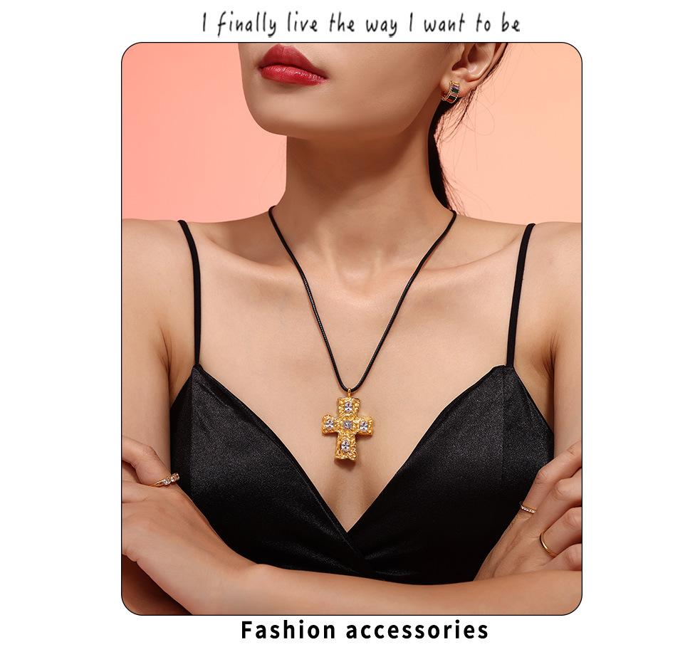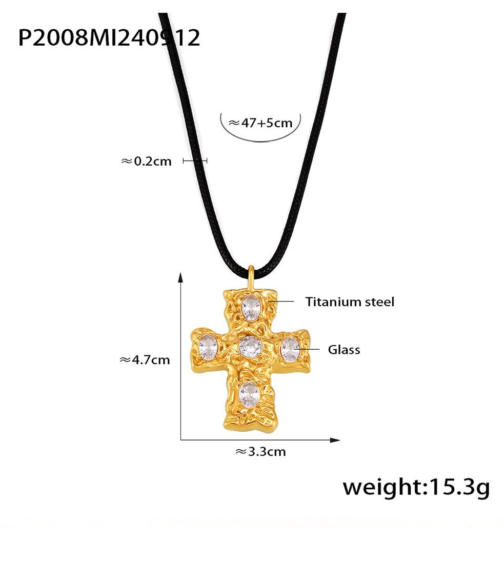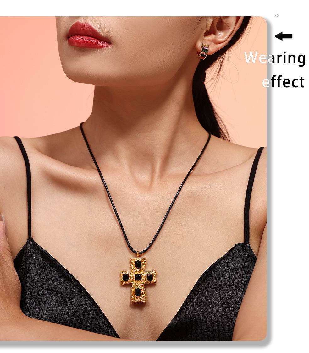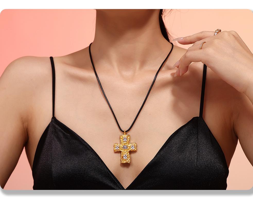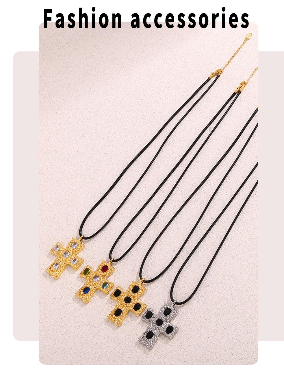 Collar de cuerda de cera con incrustaciones de circonitas cruzadas con patrón de martillo de Sugar New Design, sin decoloración, estilo europeo y americano, joyería para mujer
