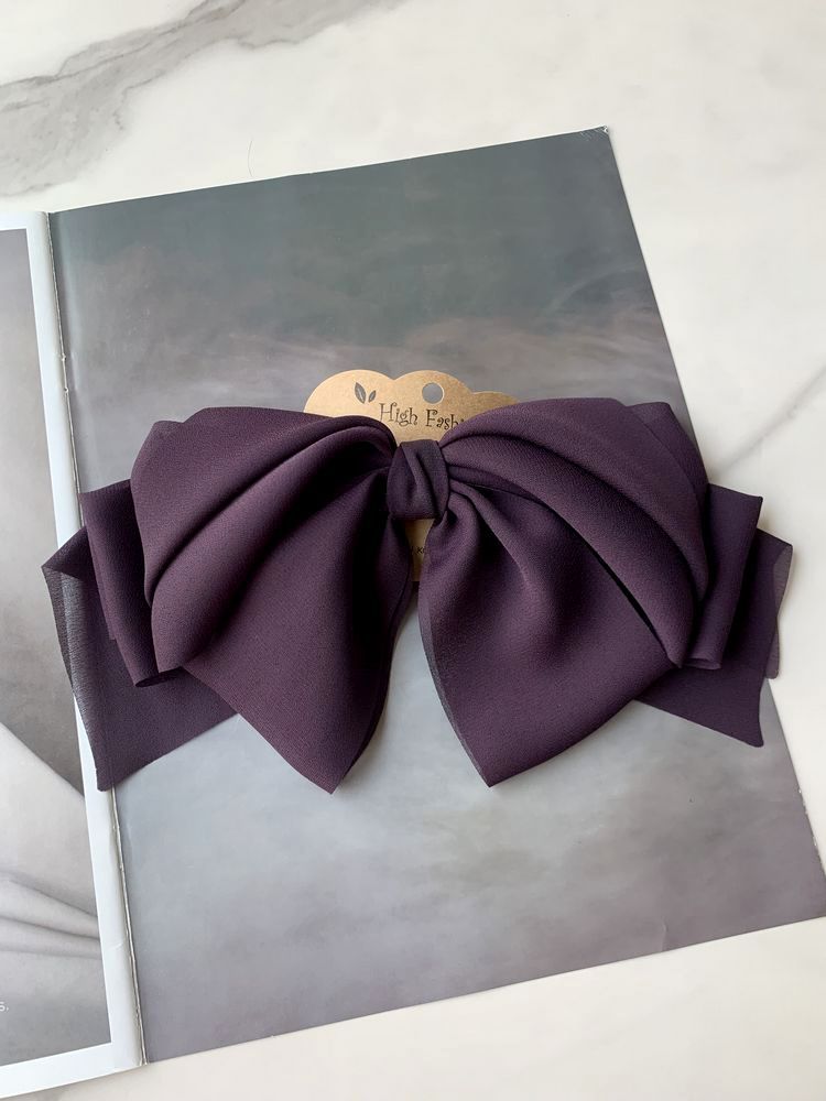 Horquilla de malla negra con lazo grande para la parte superior de la cabeza, pinza morada para cola de caballo, accesorio para el cabello, tocado, horquilla