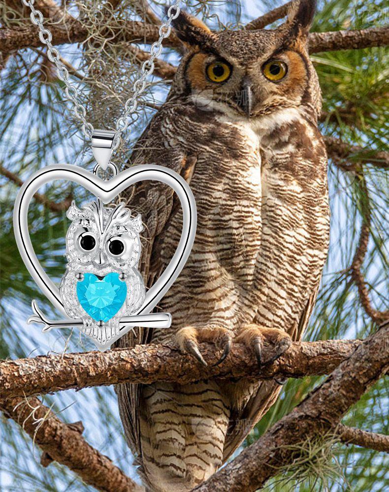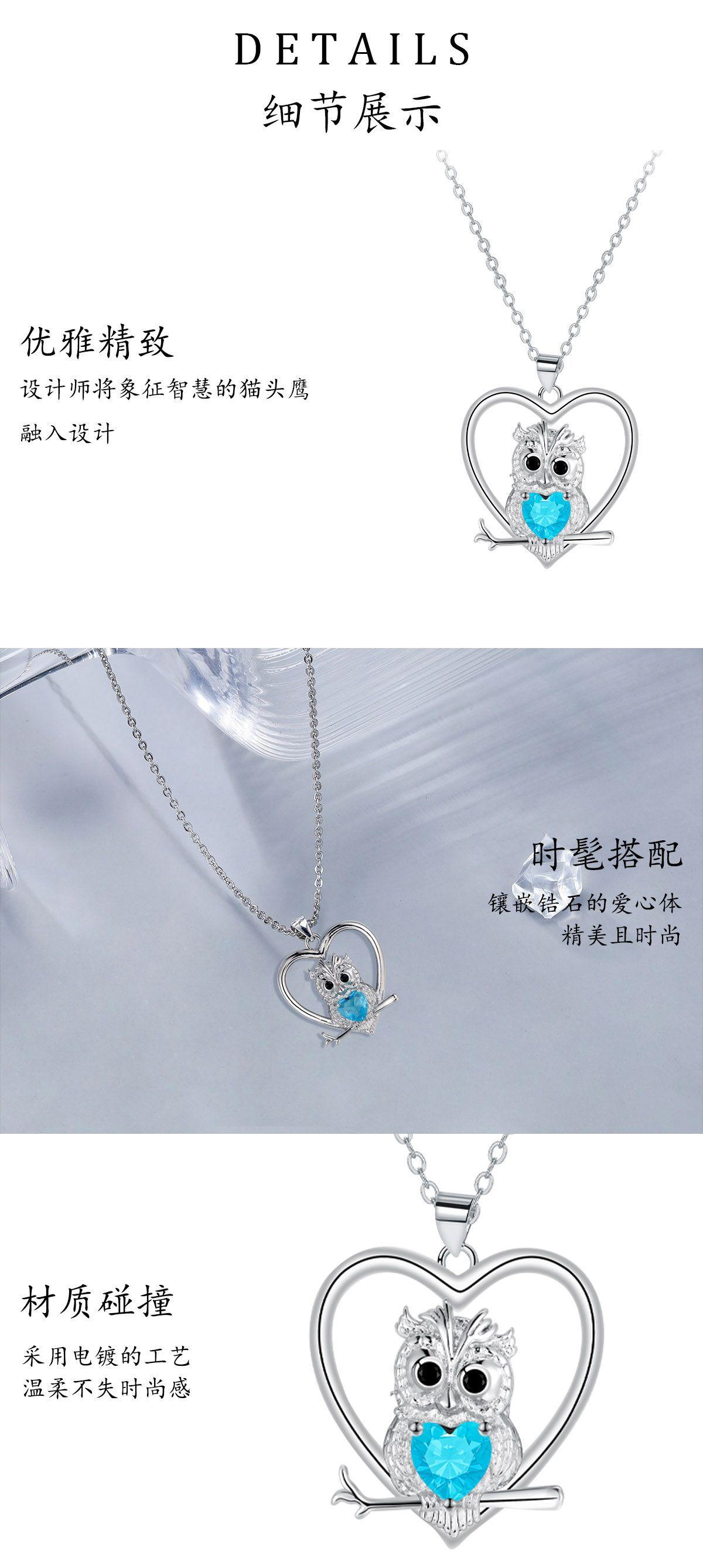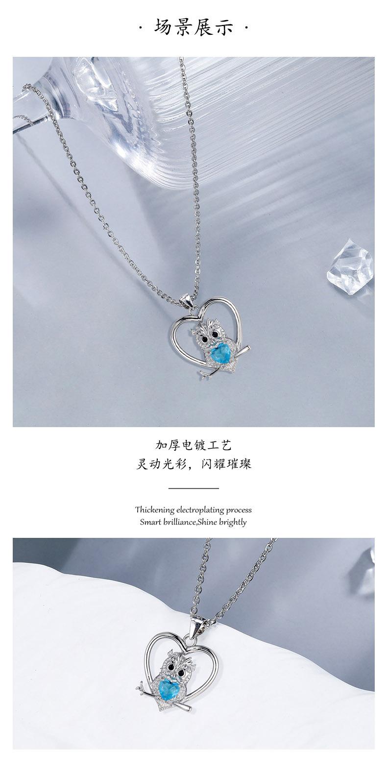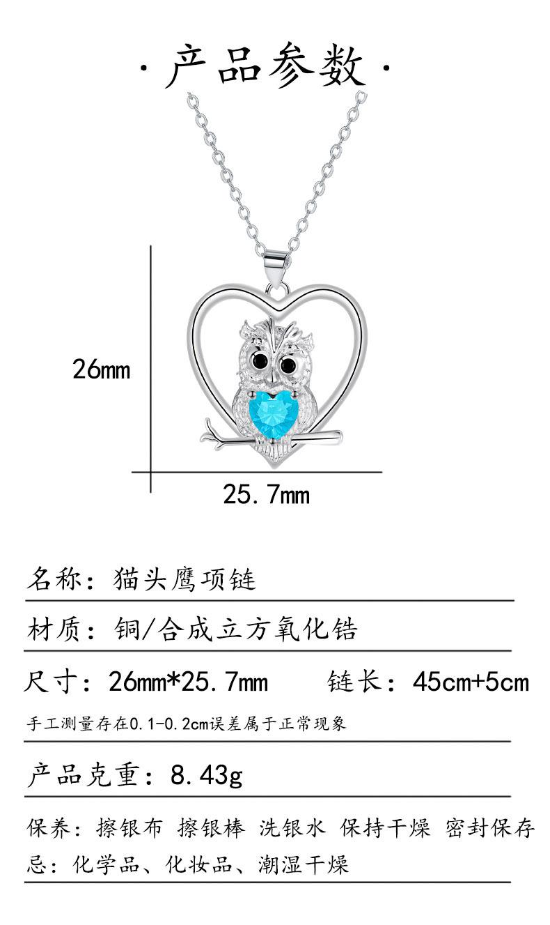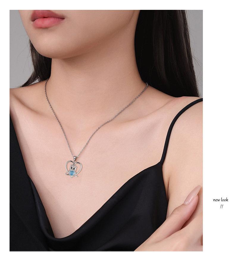 Collar con Colgante de Búho de Joyería de Corazón Azul Especial Transfronterizo de Europa y América de Cam Man para Mujer, Diseño Lindo de Corazón