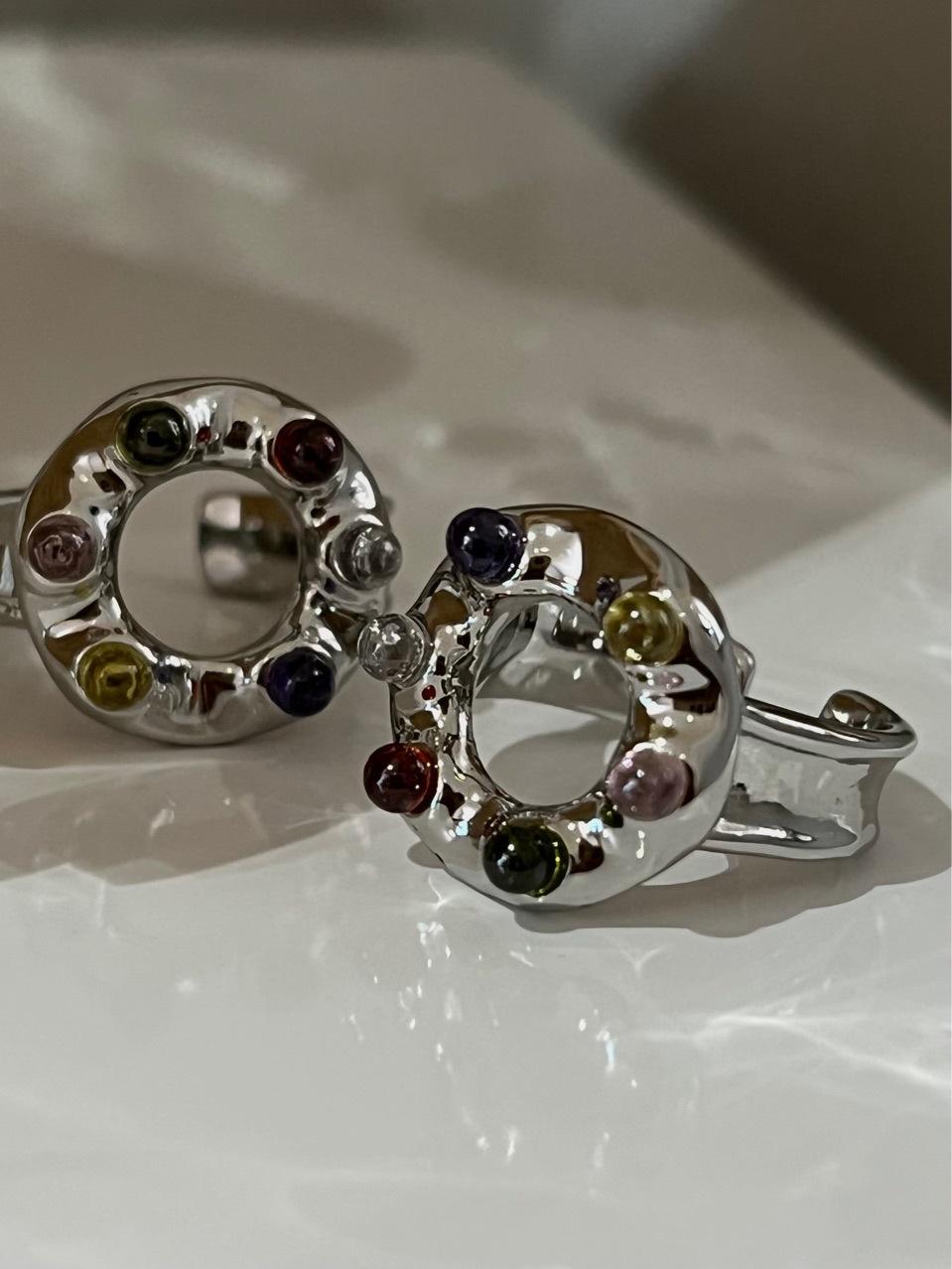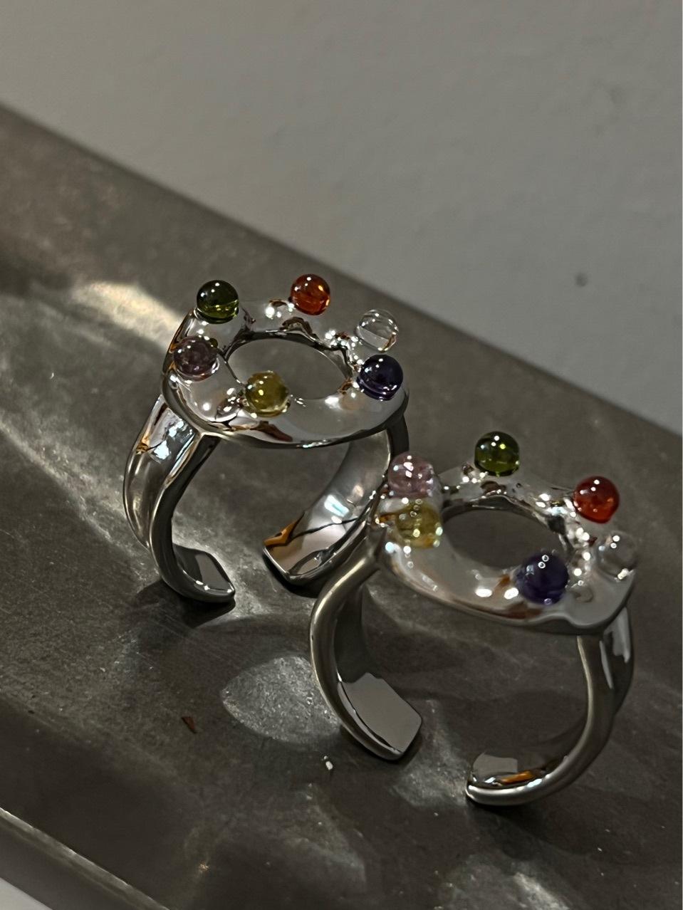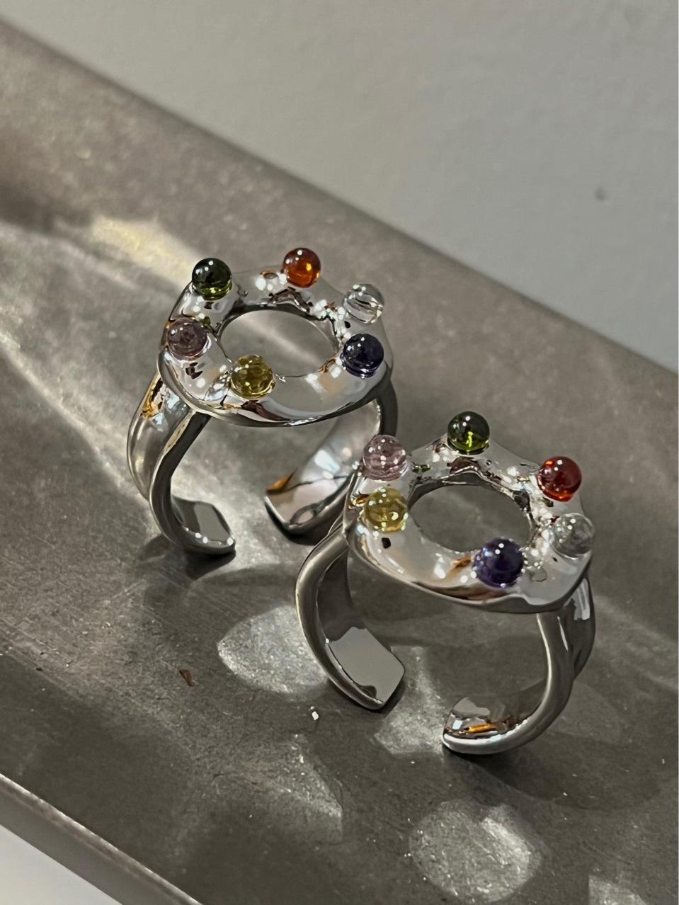 Q Primavera y Verano Nueva Moda Nicho Estilo Dulce Cool Anillo de Cuentas Colorido Nicho Arte en Vidrio Anillo Abierto para Mujer I5-1