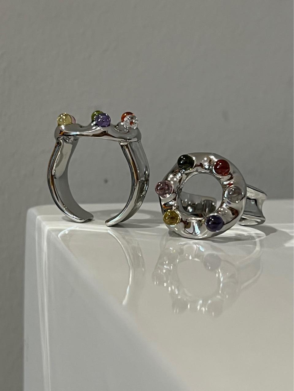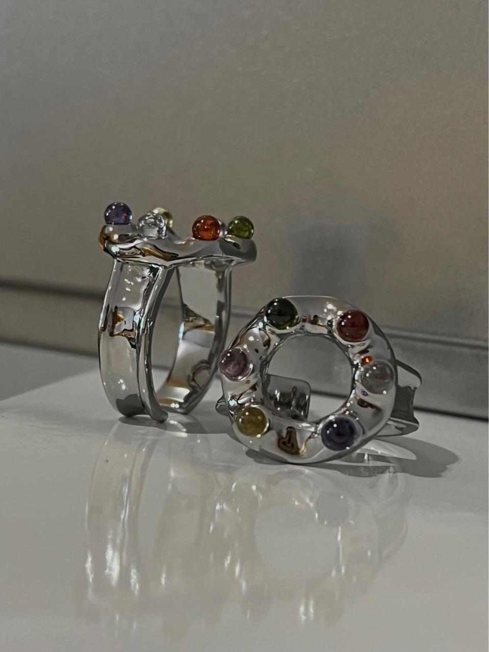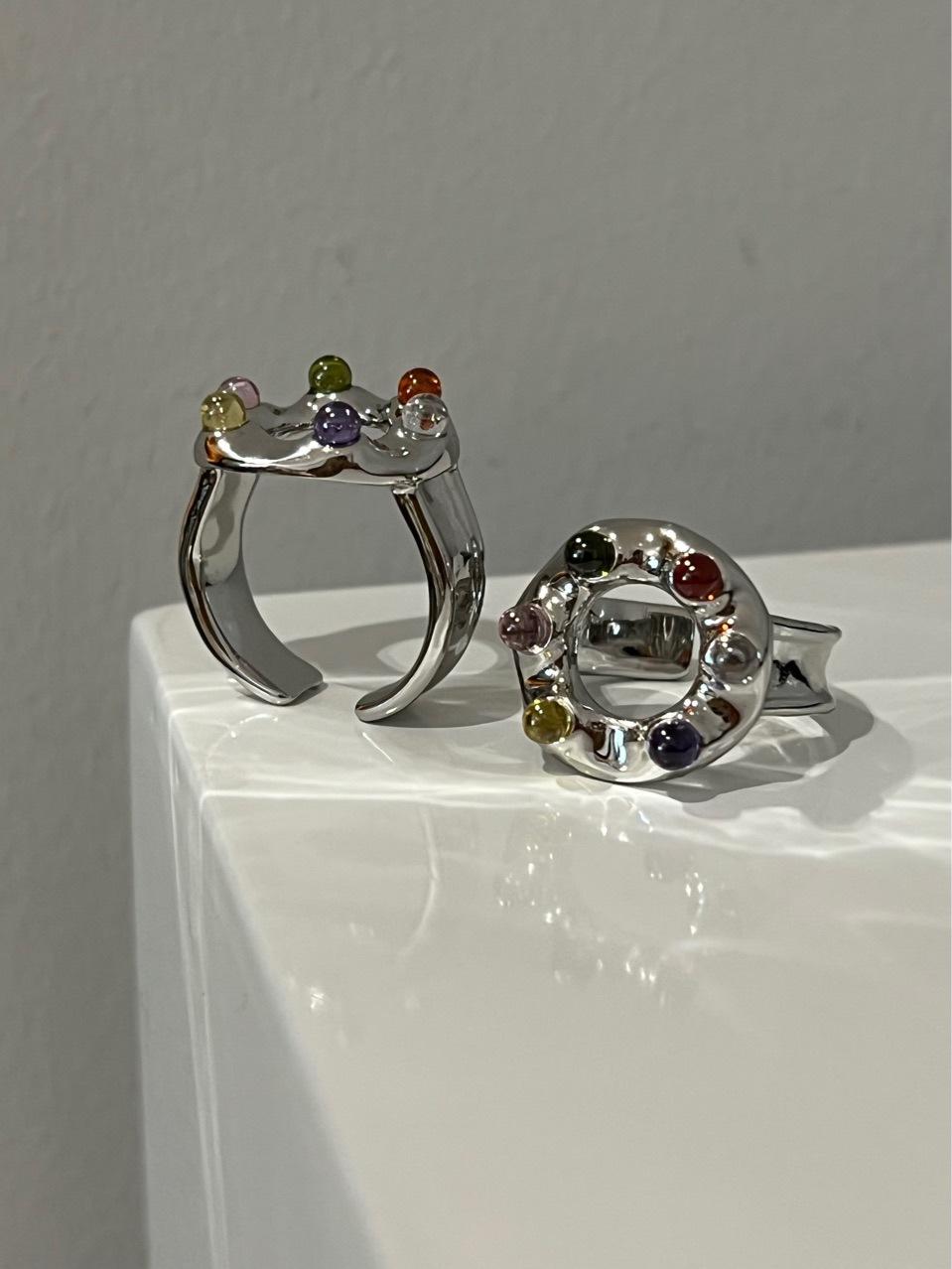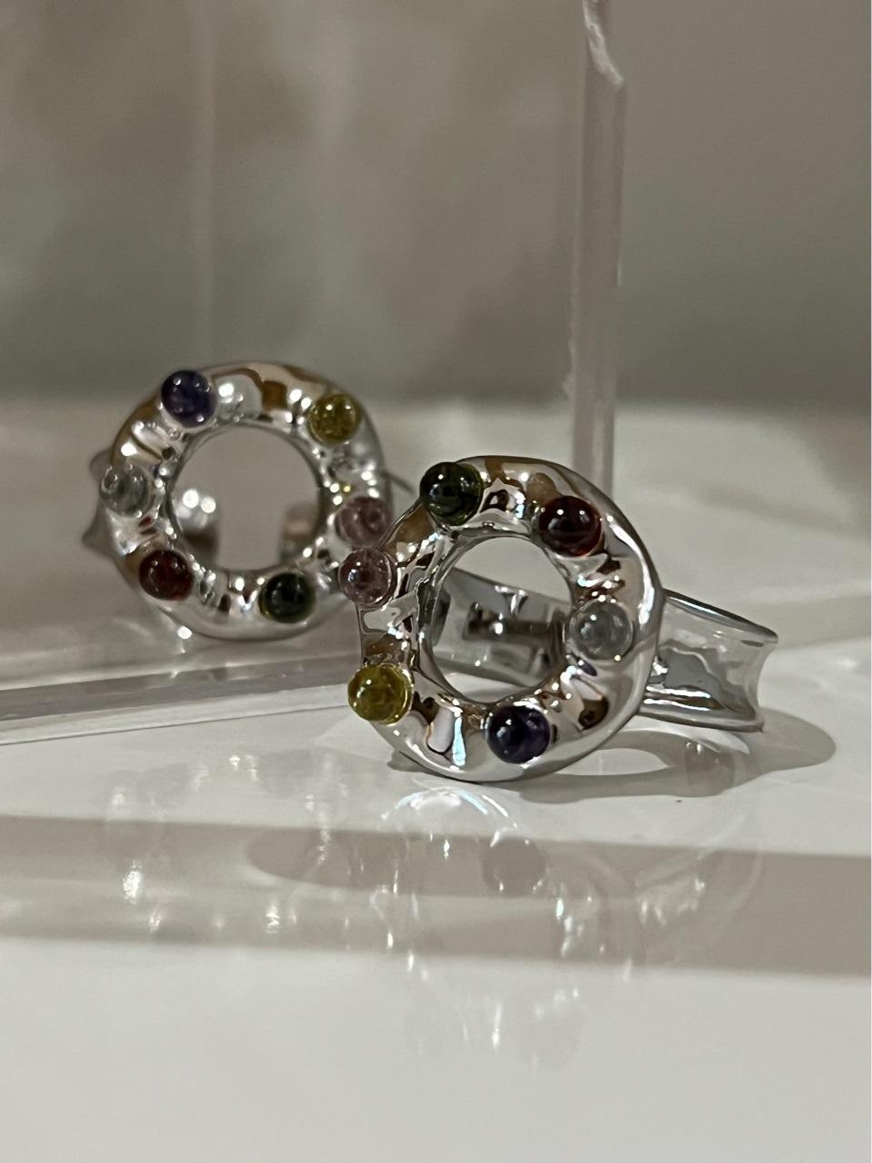 Q Primavera y Verano Nueva Moda Nicho Estilo Dulce Cool Anillo de Cuentas Colorido Nicho Arte en Vidrio Anillo Abierto para Mujer I5-1