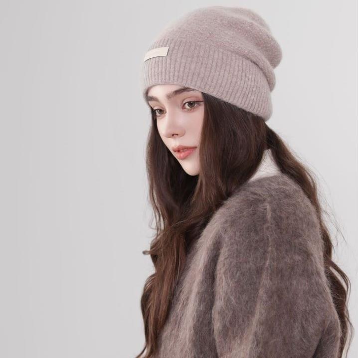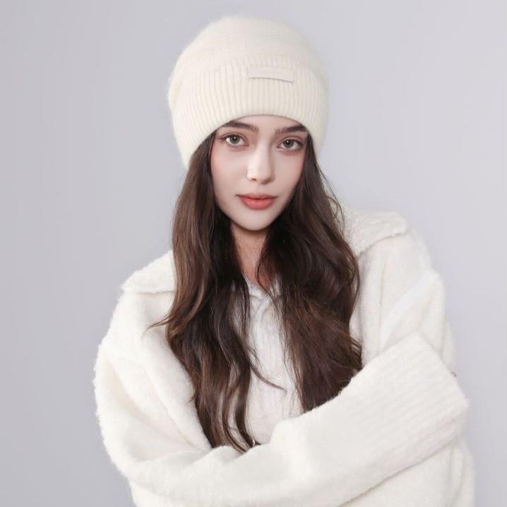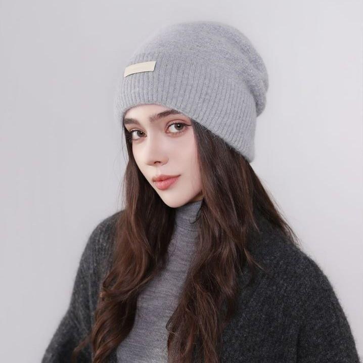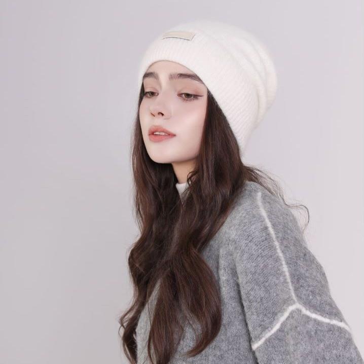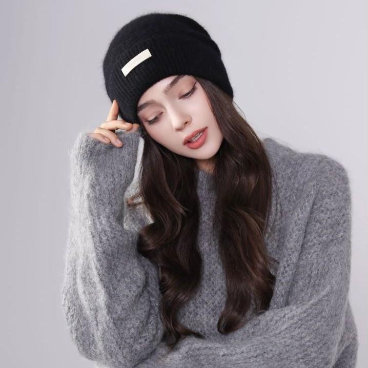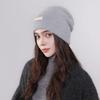 Gorro de lana de color liso para otoño e invierno, gorro de lana gruesa de punto para mujer, gorro largo informal de moda con protección para las orejas