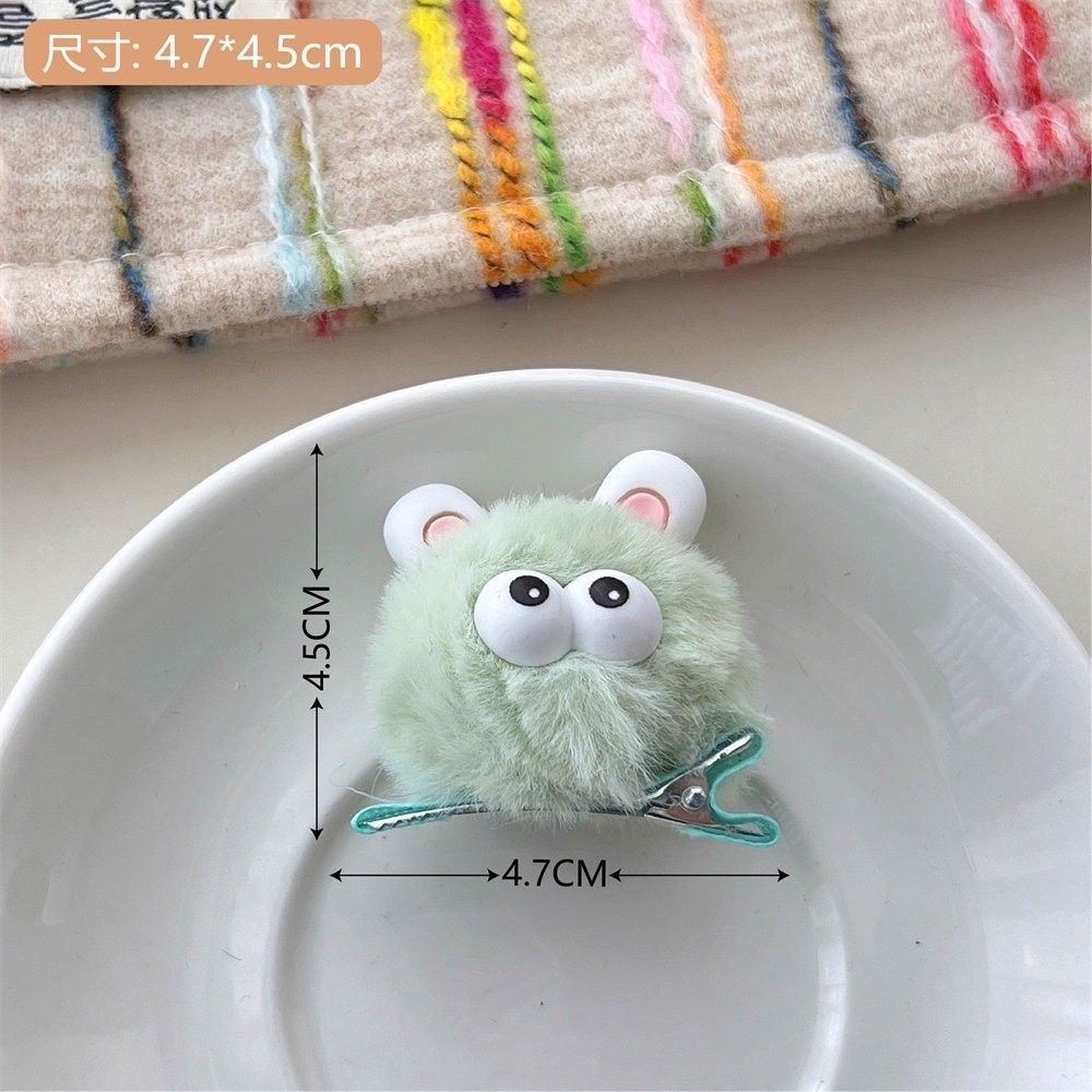 Horquilla con forma de bola de pelo con orejas grandes y ojos grandes para niños, estilo estéreo, estilo coreano, con flequillo roto y dopamina, accesorios para el cabello muy bonitos.
