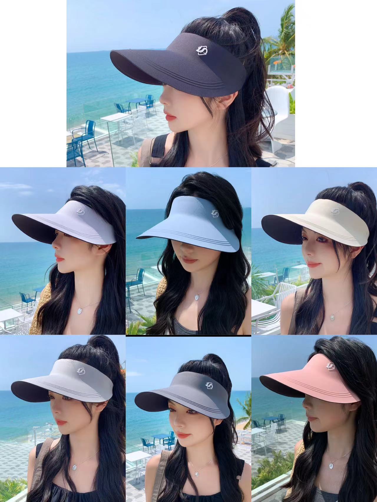 Sombrero de Protección Solar Integrado Sin Costuras para Mujer Verano 2024 Nuevo Sombrero de Copa Vacía de Ala Ancha Hielo Seda Transpirable Sombrero para el Sol Ligero a la Moda