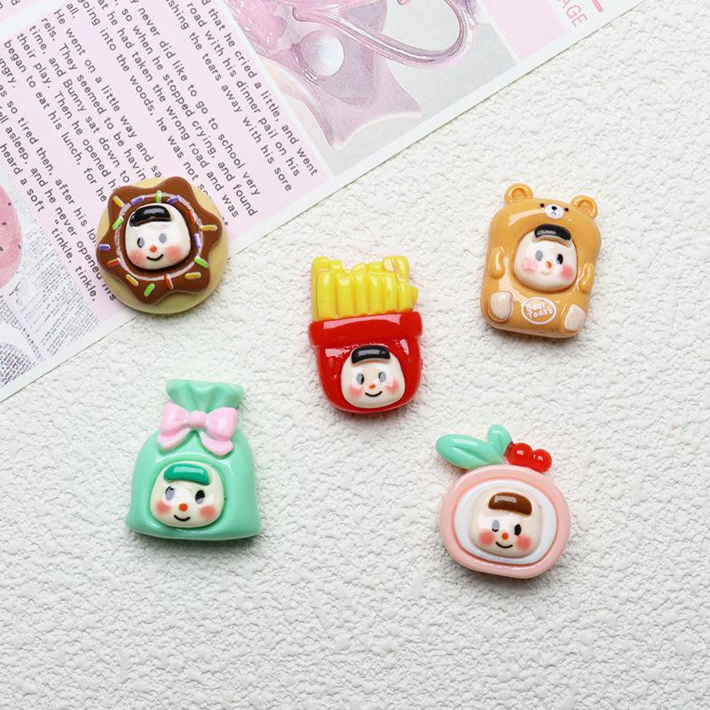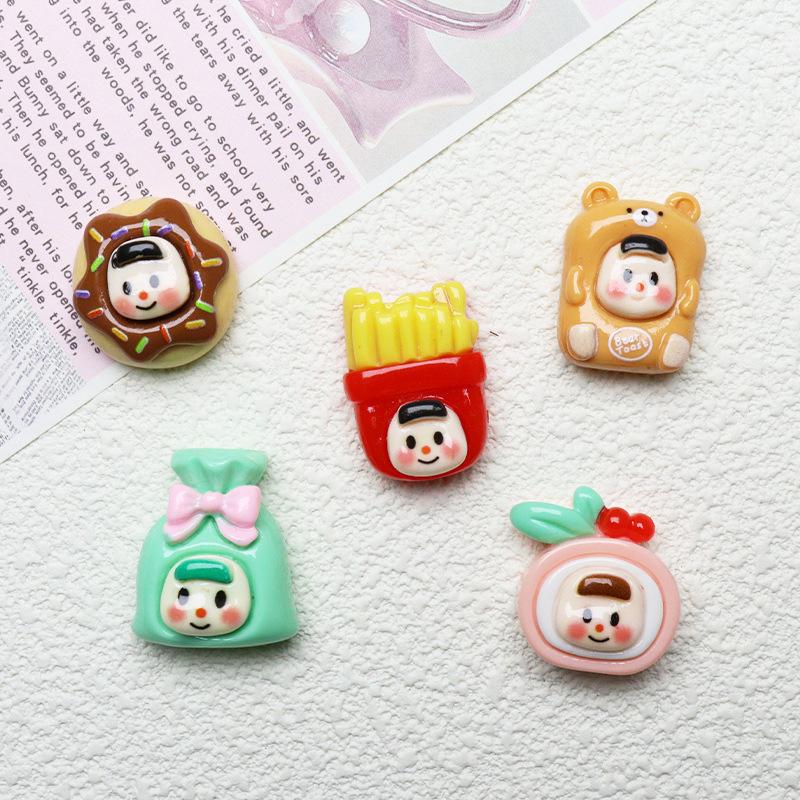 Accesorios de resina para juego de comida de múltiples hermanas con dibujos animados, horquilla para el cabello, pegamento en crema, parche brillante, carcasa de teléfono móvil, materiales de joyería al por mayor