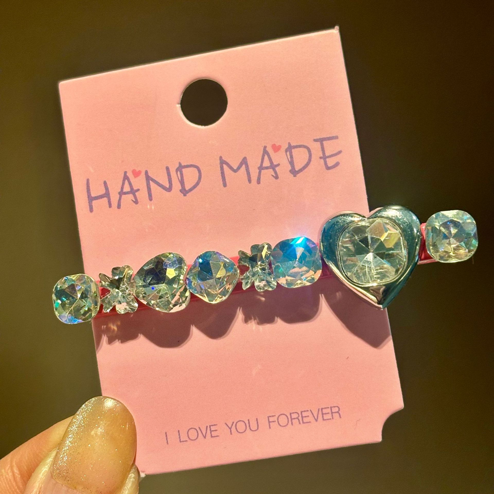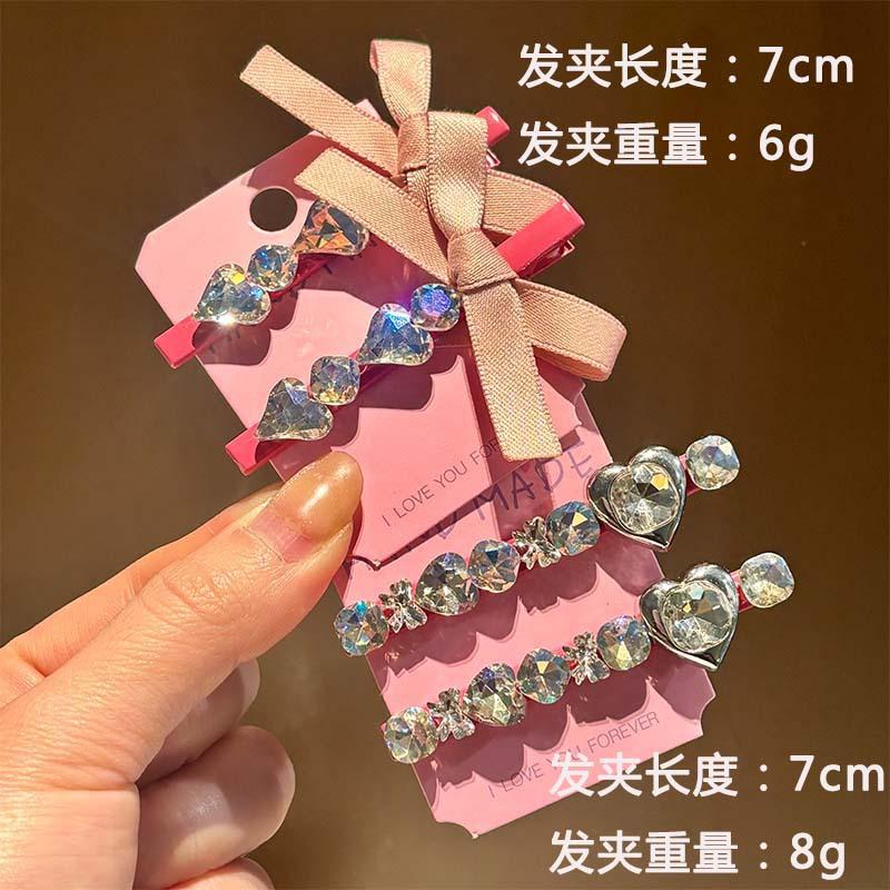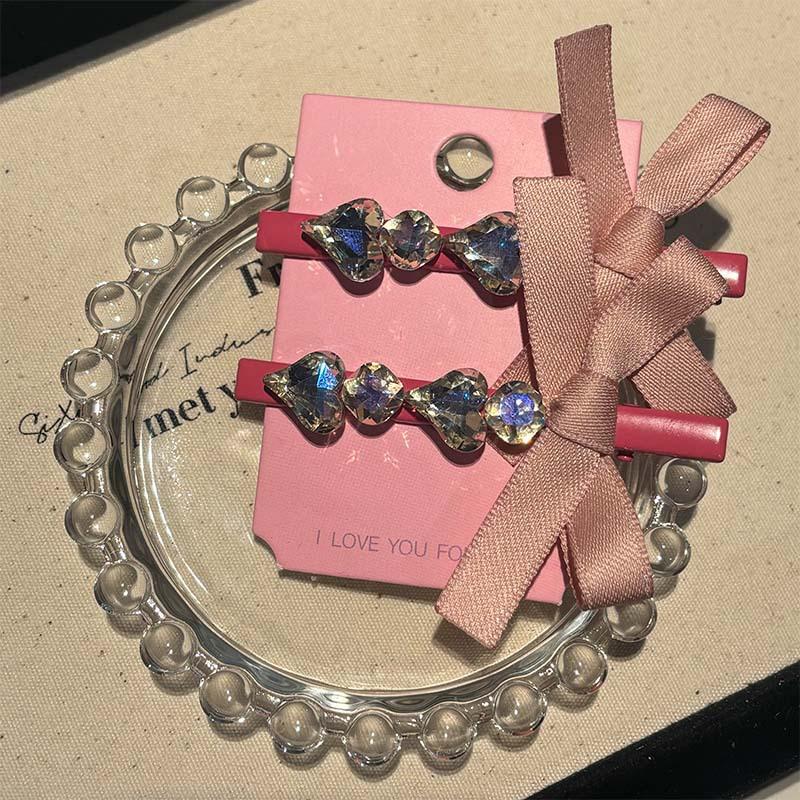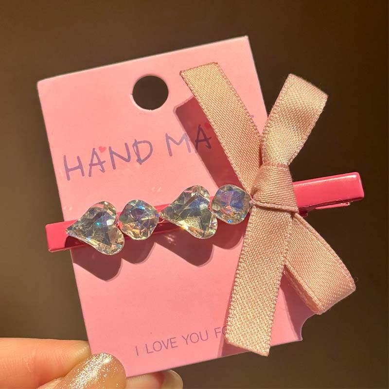 Horquilla de Verano con Lazo de Cinta, Corazón Dulce con Pedrería, Estilo Ins de Alta Gama, Pinza Lateral, Pinza para Flequillo, Accesorios para el Cabello para Mujer