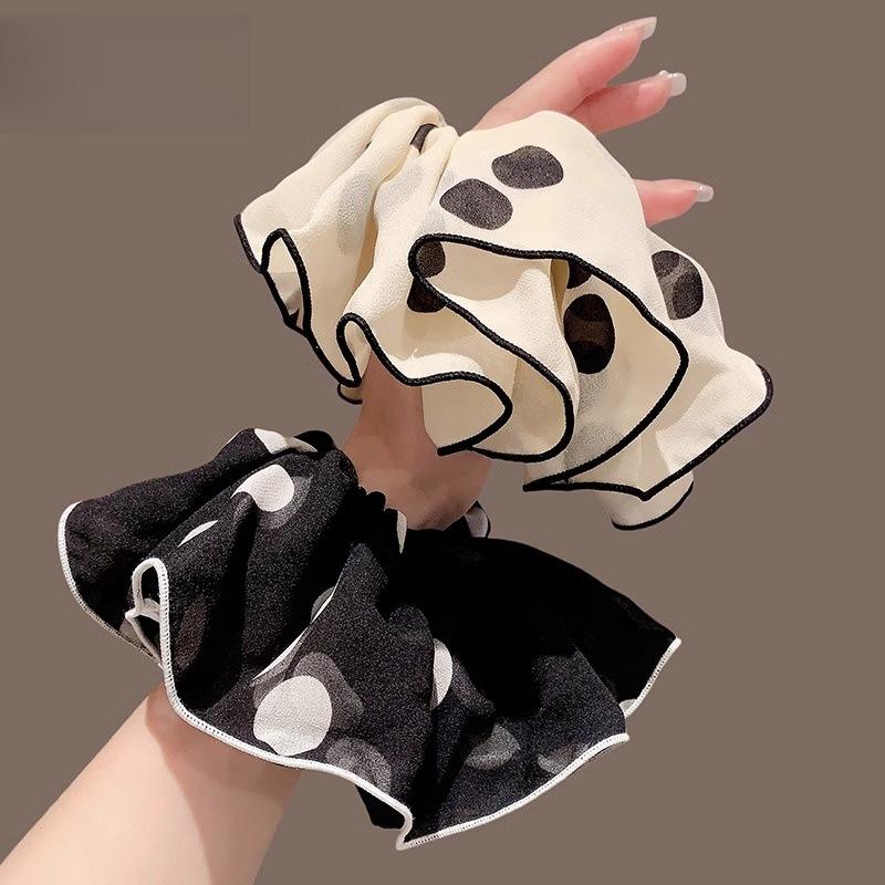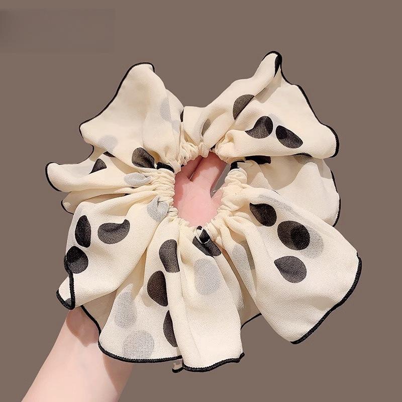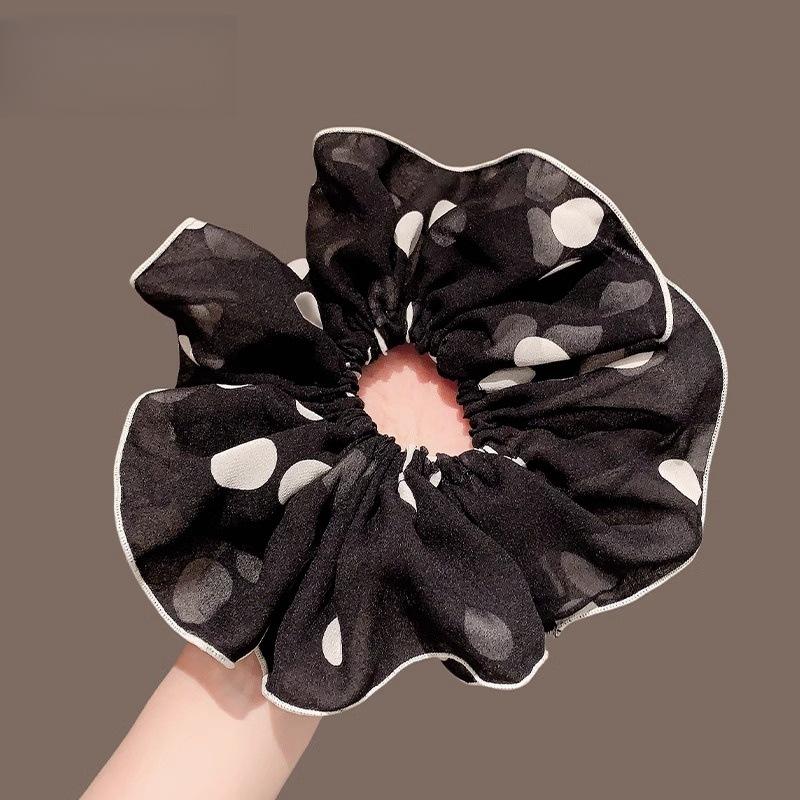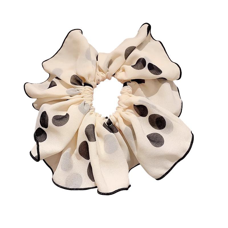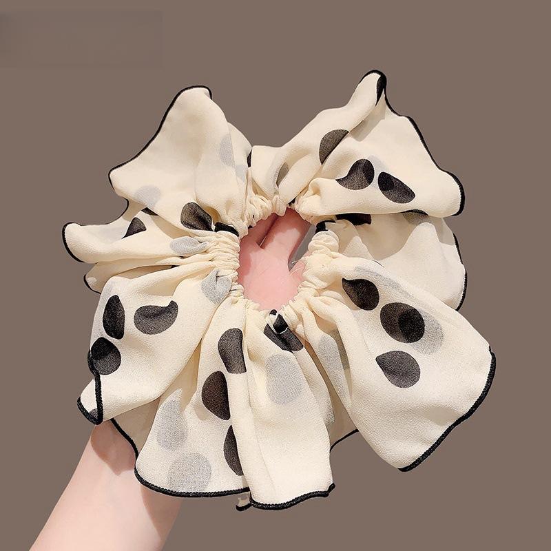 Anillo elegante para el cabello con ondas y lunares para el intestino grueso, elegante y clásico, cuerda para el cabello de tela, estilo cyber celebridad, con borde ancho, cuerda para la cabeza, bola de goma, tocado con tendón.