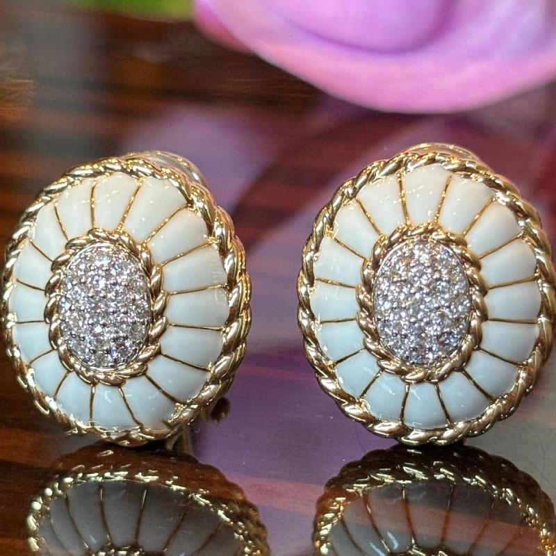 Diamond twist pattern white enamel stud earrings