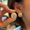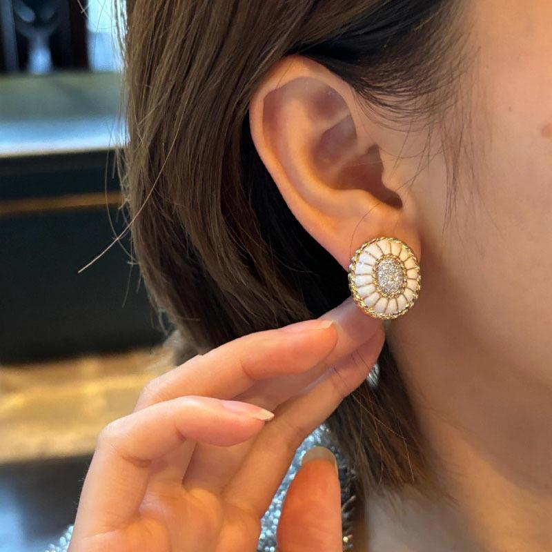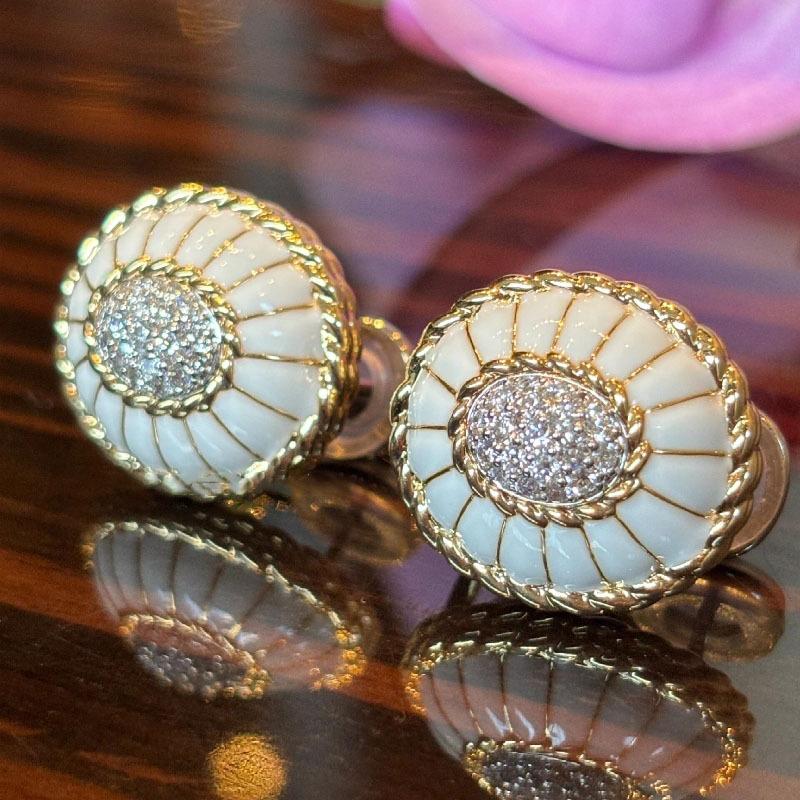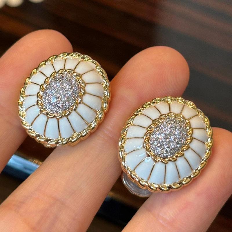 Pendientes de esmalte blanco con diseño de diamantes y estilo retro francés, con forma de cúpula, tridimensionales, exquisita joyería para las orejas.