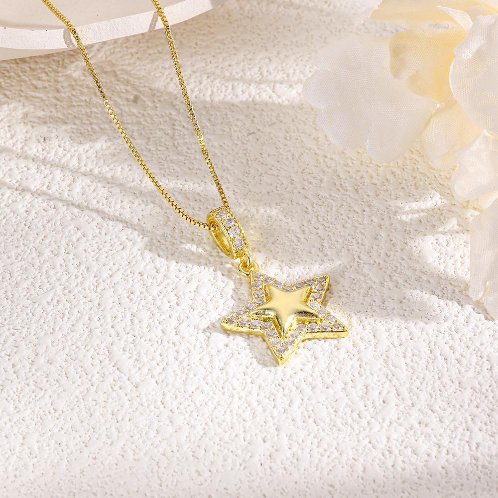 Collar con colgante de estrella de cinco puntas y diamantes de imitación, unisex, estilo europeo y americano, con personalidad de alta calidad.