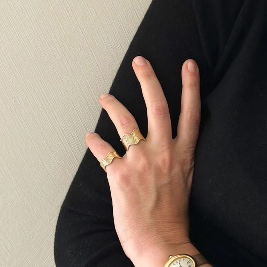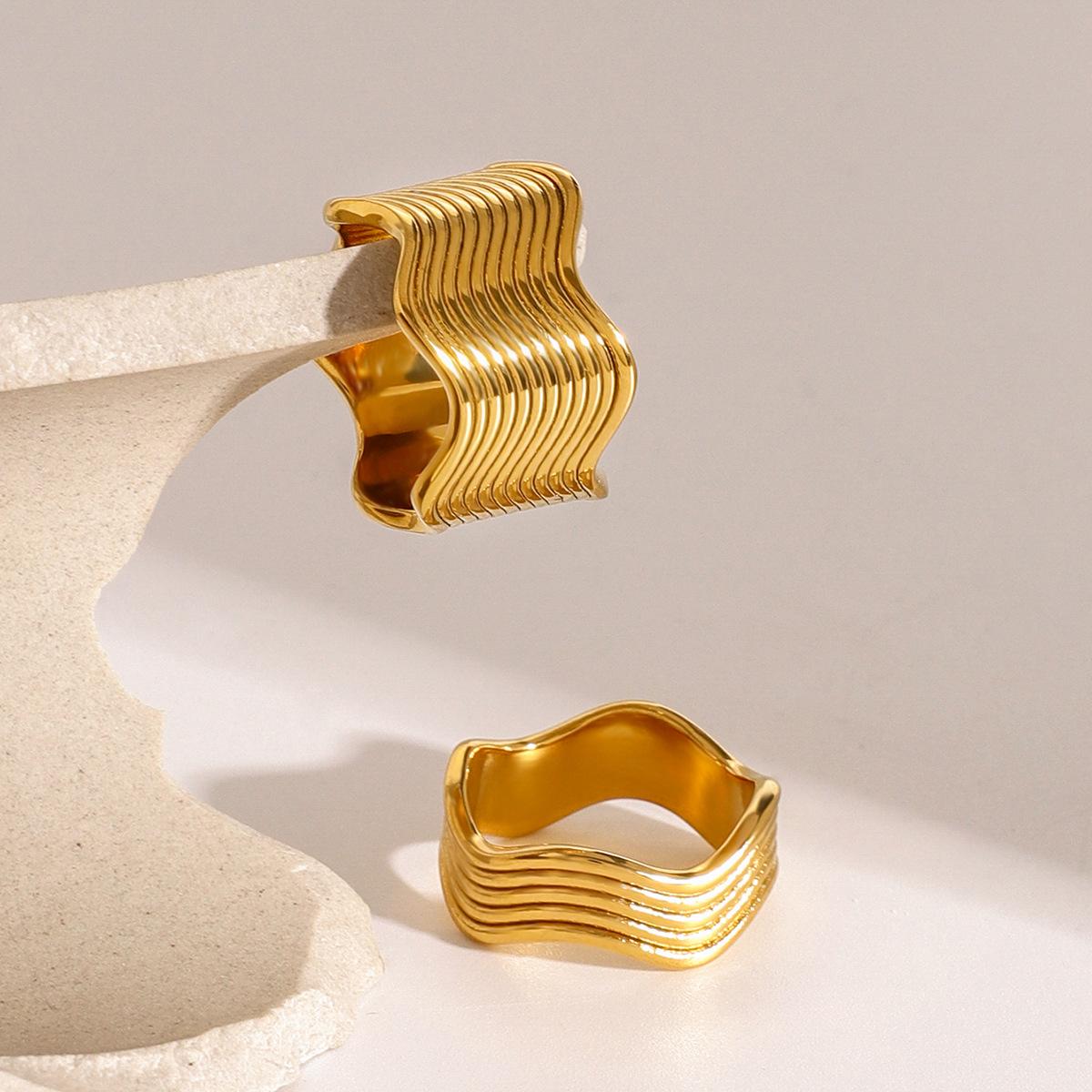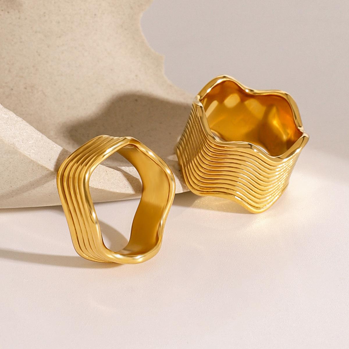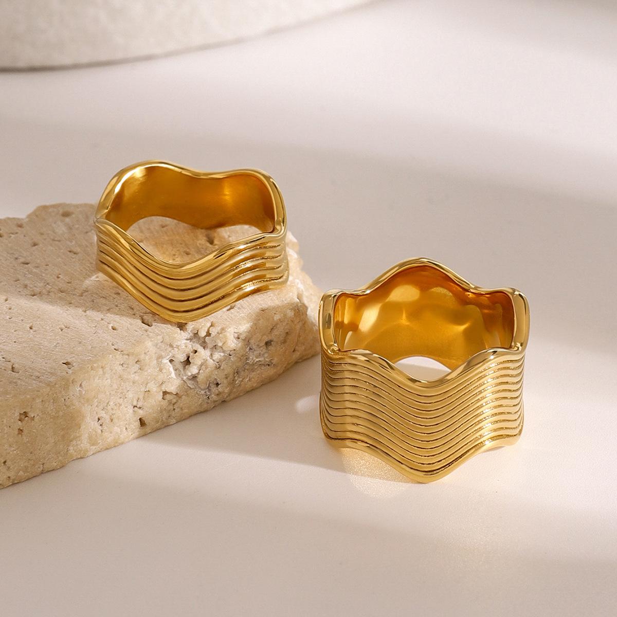 Anillo Jiding Europeo y Americano de Acero Inoxidable Ins Anillo de Onda Ancho de Alta Gama Joyería Transfronteriza Anillo de Acero al Titanio Electrochapado