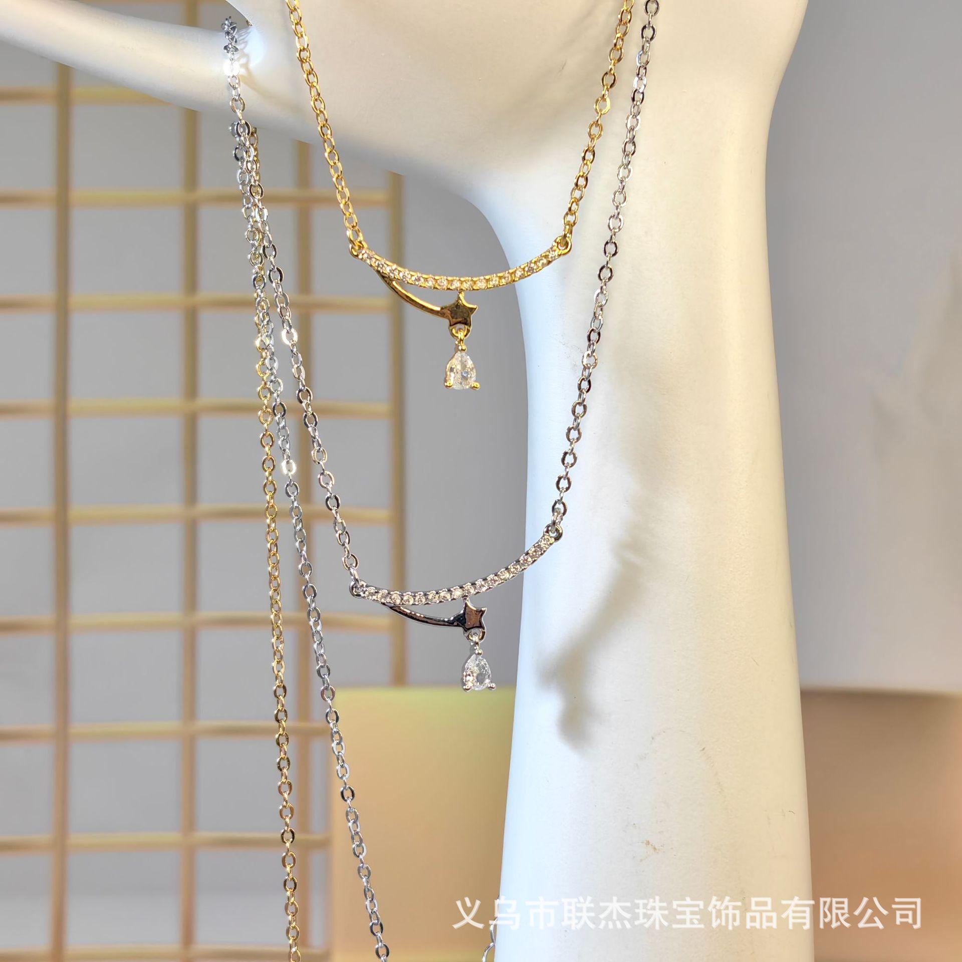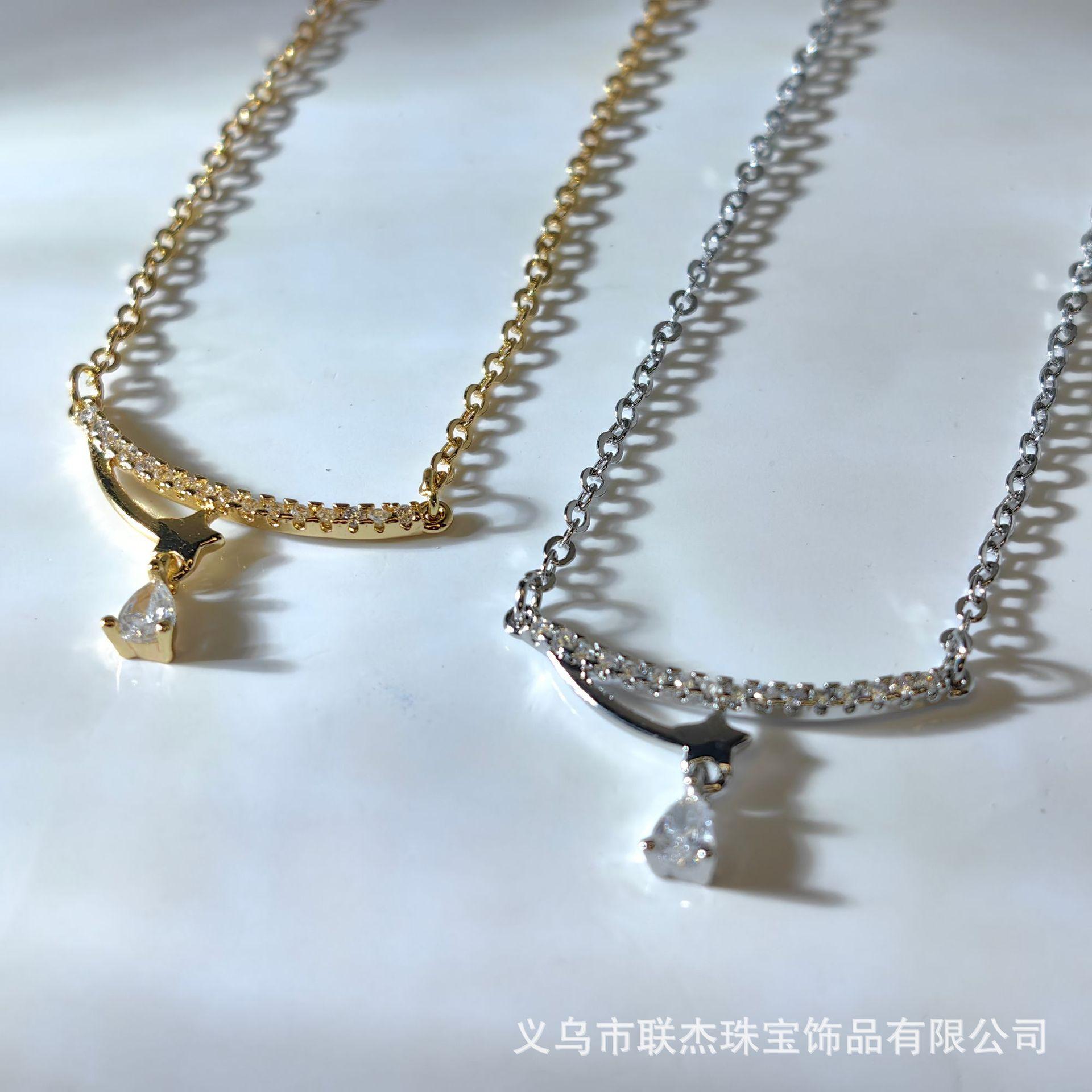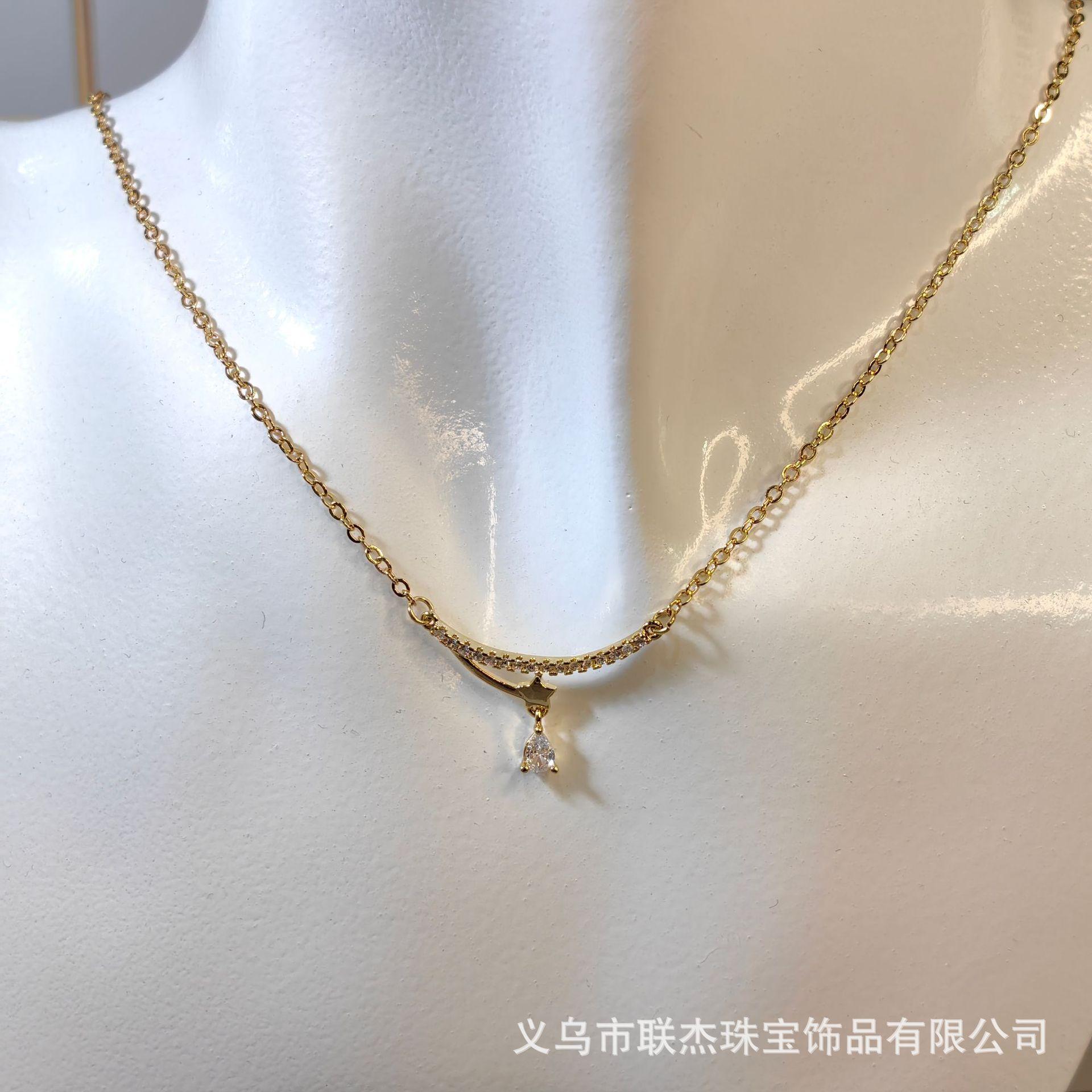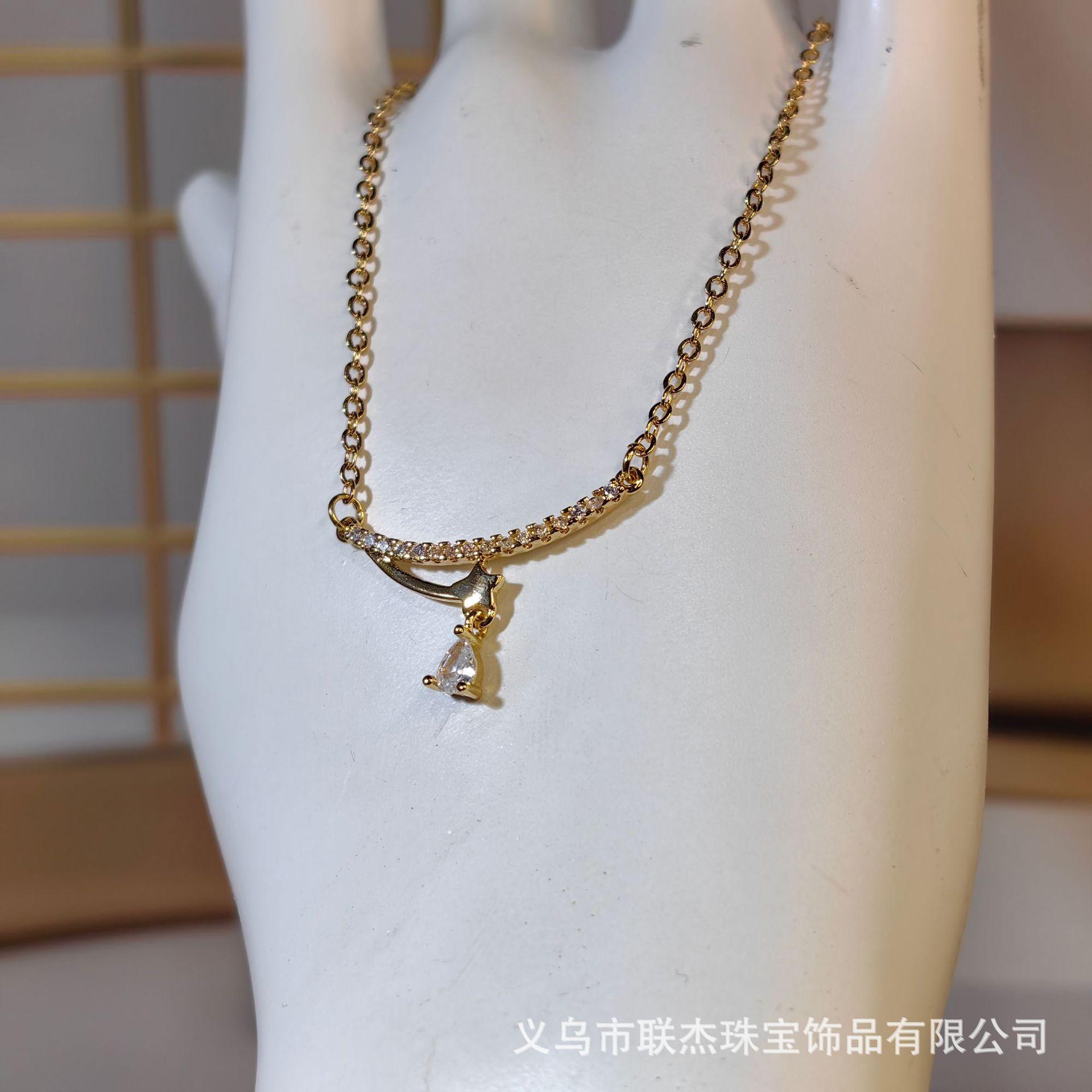 Elegante cadena de clavícula con circonitas galvanizadas en oro auténtico, diseño de nicho femenino, collar con forma de estrella y gota de agua, collar con personalidad que combina con todo.