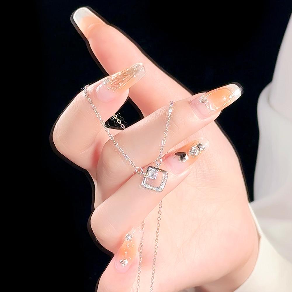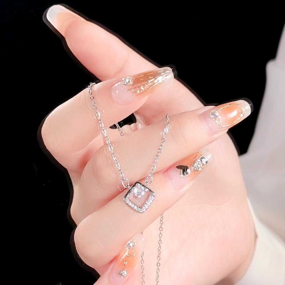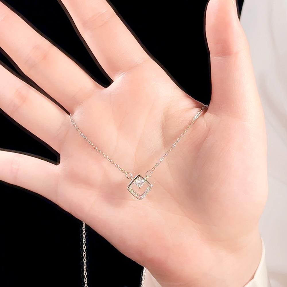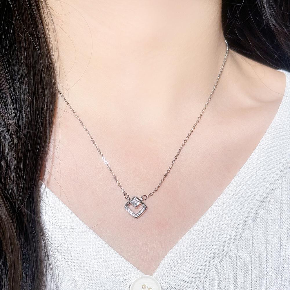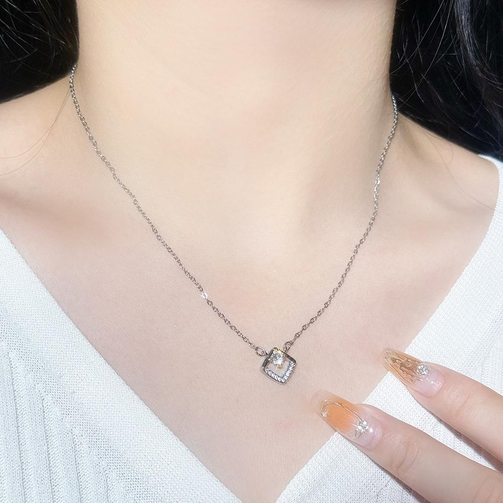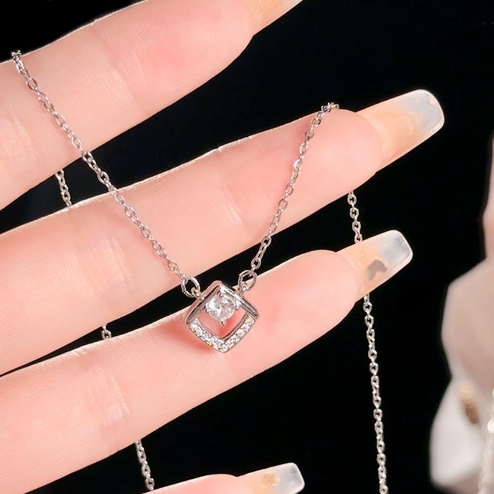 Collar Cuadrado con Diamantes para Mujer Verano 2025 Lujo Ligero Versátil Colgante Geométrico Estilo Bosque Ins Cadena Clavícula Joyería al Mayoreo
