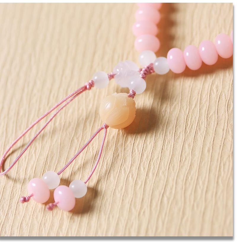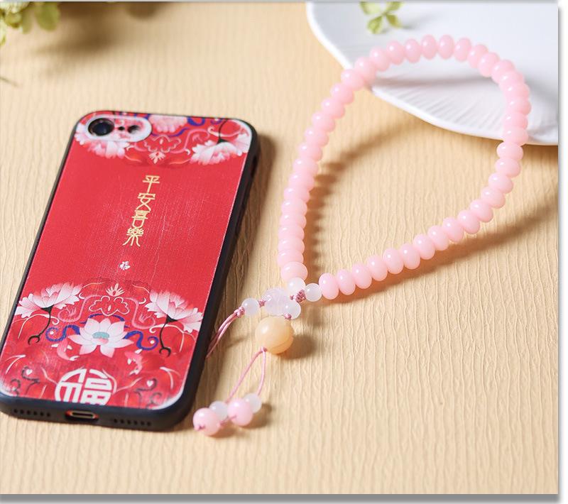 Romantic sakura 6x9mm mobile phone chain with weathered lotus, Green jade bodhi 7*7mm mobile phone chain with ...