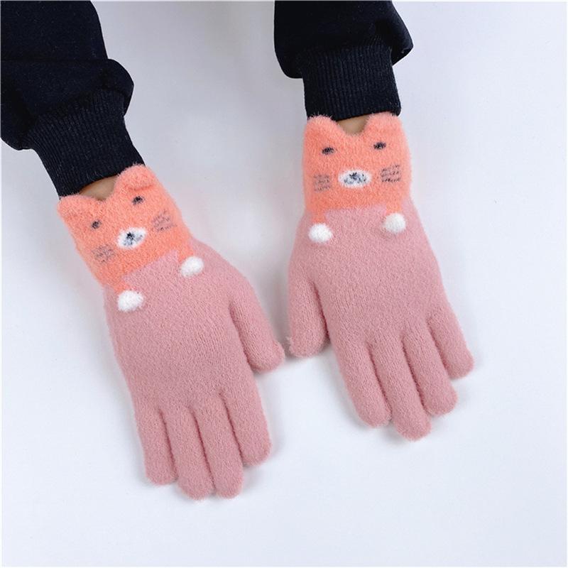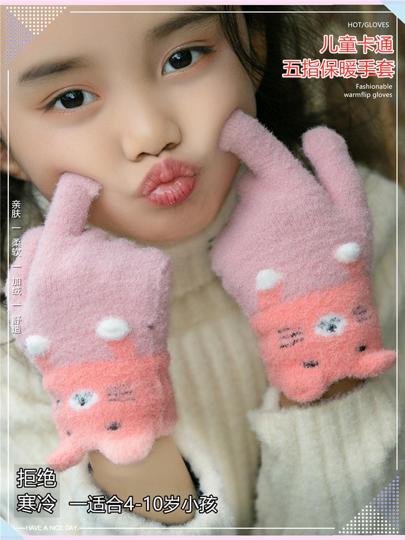 Guantes para niños de 3 a 9 años, invierno, lindos dibujos animados de cinco dedos, estudiantes de primaria, cálidos, otoño e invierno, niñas, bebé, otoño e invierno, niños