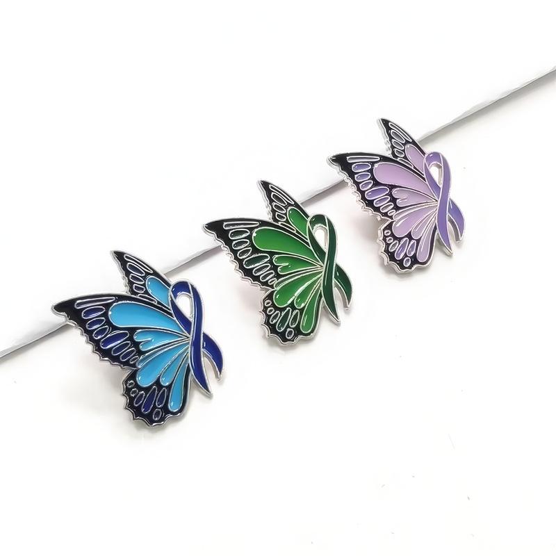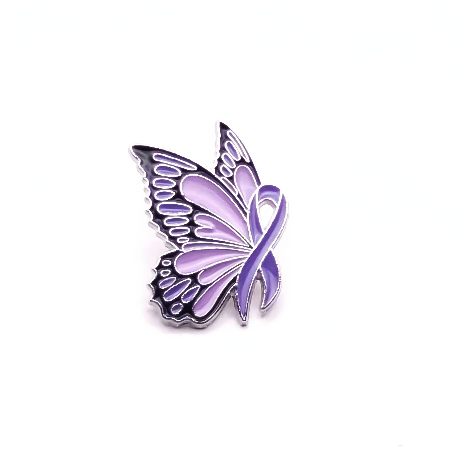 Broche Mariposa Cinta Morada Respeto Paz Coraje Supervivencia Chica Insecto Pin Insignia Alas Estéreo Accesorios