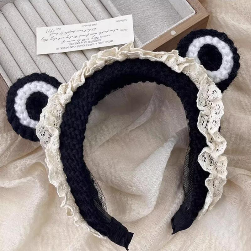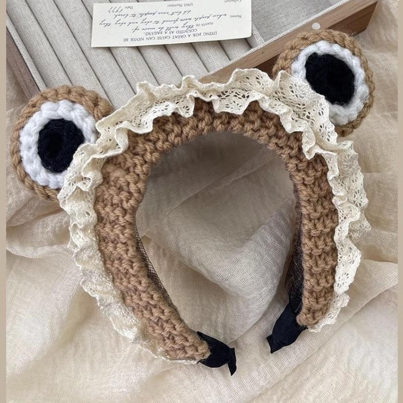 Diadema de rana de ojos grandes con dibujos animados para mujer, bonita diadema de lana tejida, pinza para el pelo, antideslizante, a presión, para la cabeza