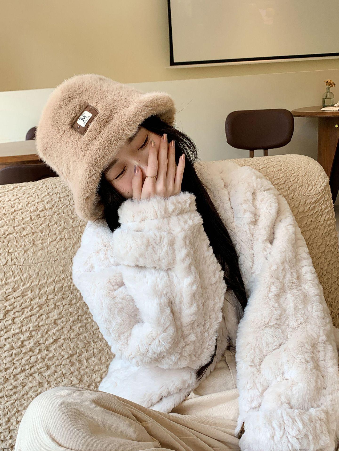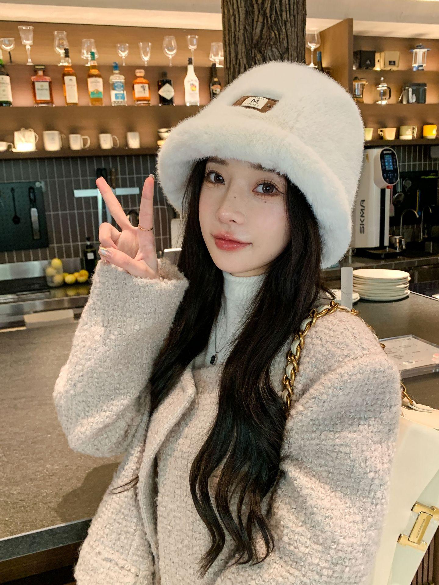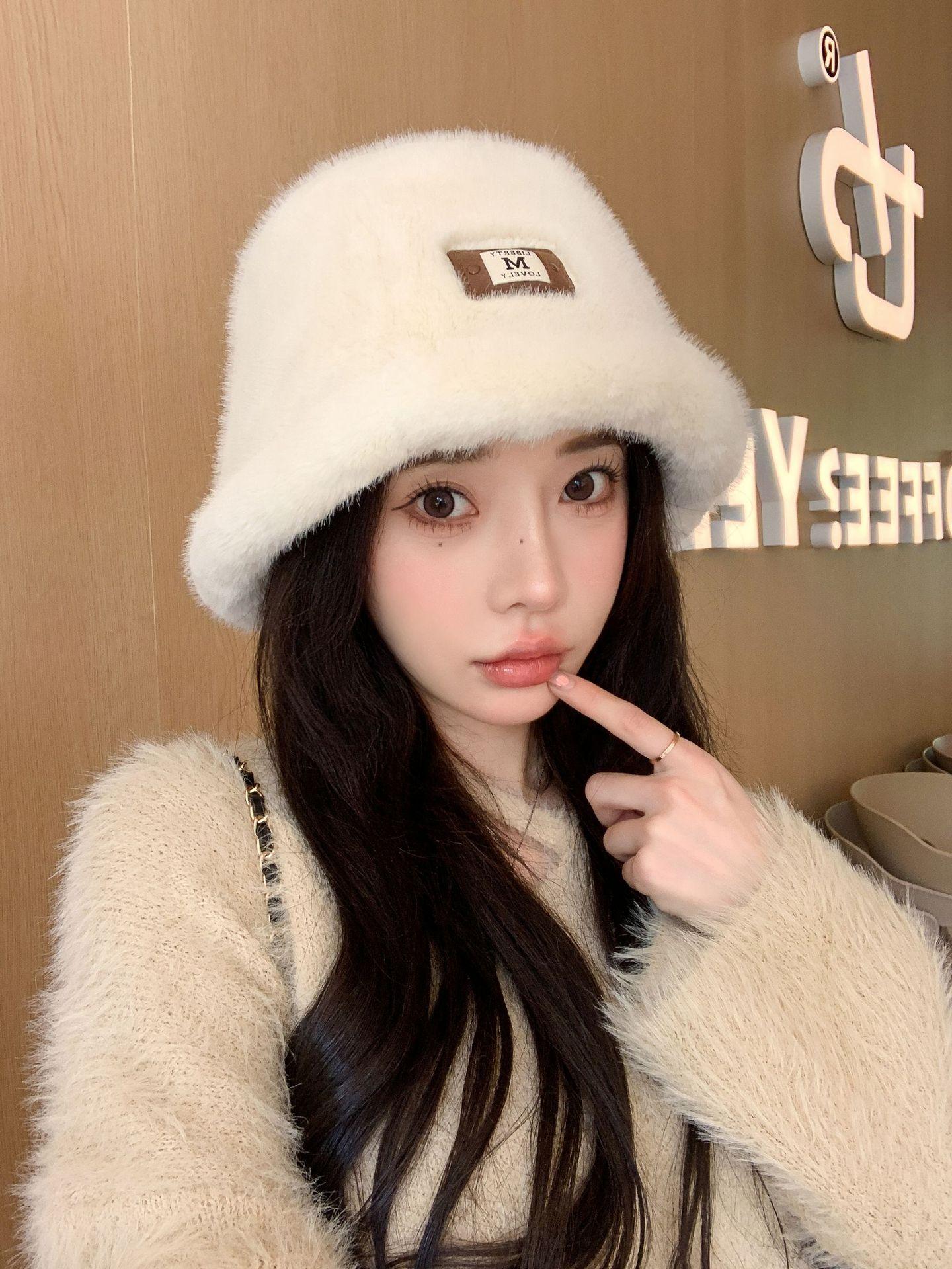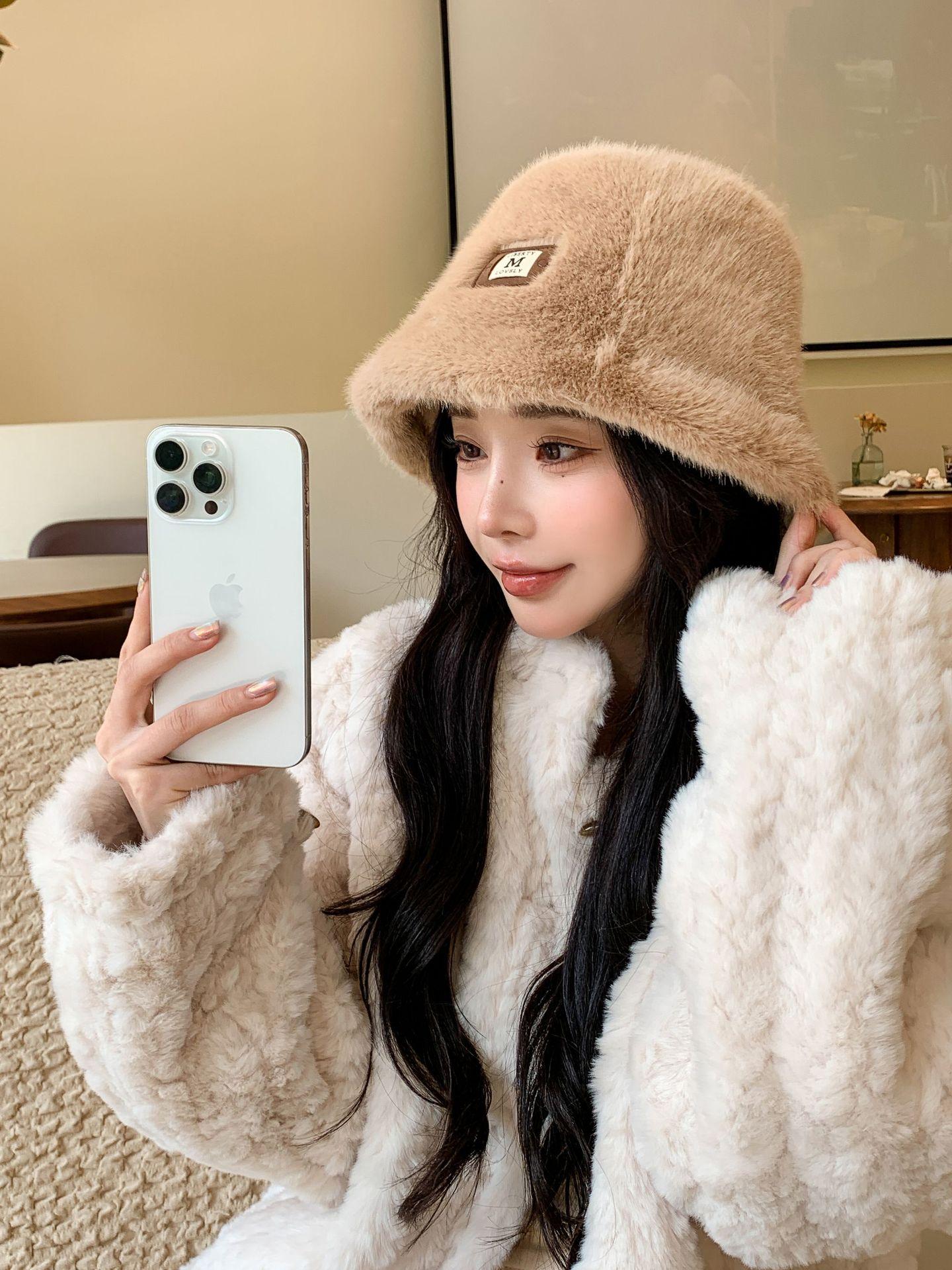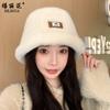 Nuevo Sombrero de Pescador Peludo Combinable Estilo Coreano Otoño e Invierno para Mujer, Moderno, Elegante, Cálido, a Prueba de Frío, Cubre la Cara, con Etiqueta de Tela Pequeña, Sombrero de Cubeta